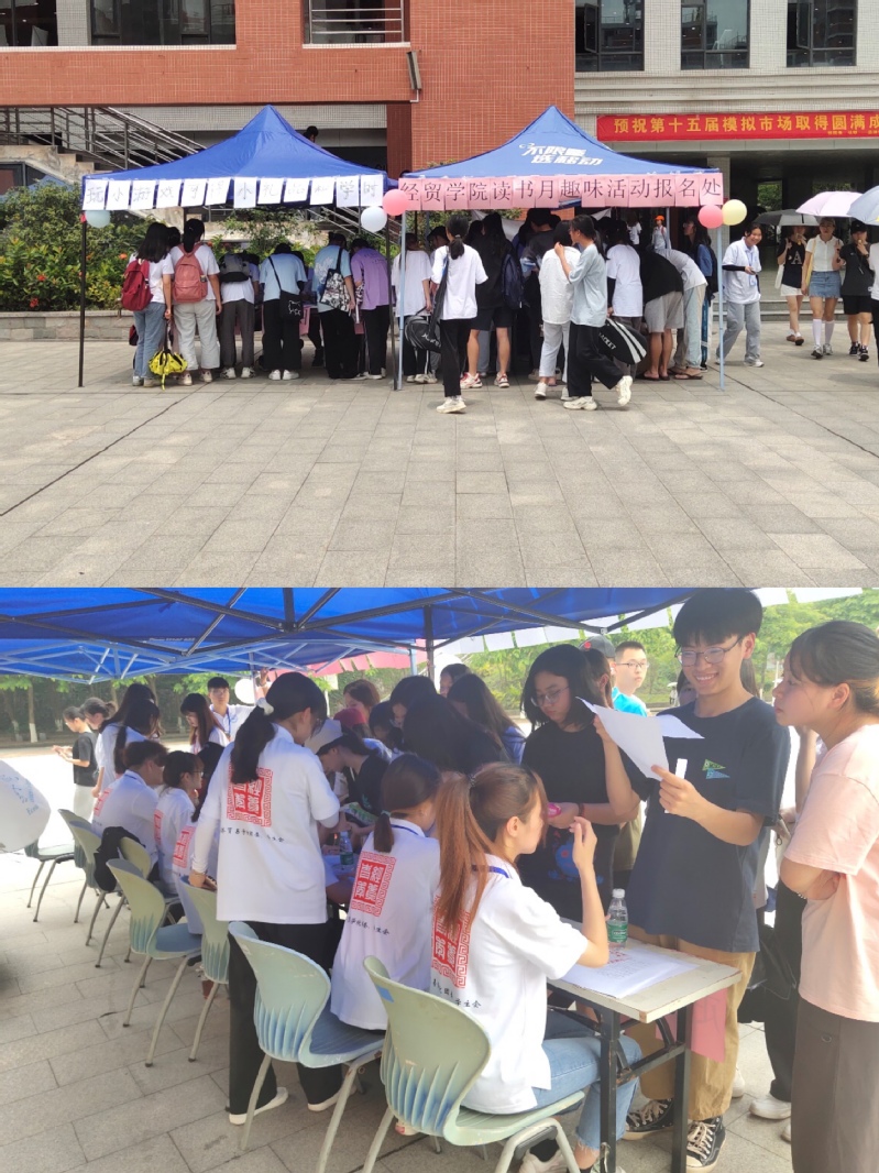 庆祝中国共产党建党一百周年,加强对工贸学子的教育引导工作,经贸学院团委、学生会的成员们在子衿广场开展读书月摆摊活动。营造健康向上的良好氛围,以此回顾党的奋斗历史,热情讴歌党的光辉业绩。通过一系列线下游戏活动激励工贸学子坚定理想信念,激发工贸学子的历史使命。