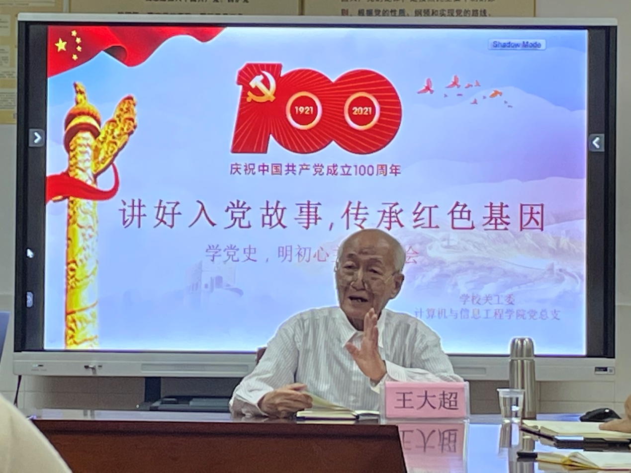 为深入学习贯彻习近平总书记对关心下一代工作的重要指示精神,全面落实《新时代爱国主义教育实施纲要》,迎接庆祝建党100周年, 根据学校开展2021年“读懂中国”活动的安排,4月27日下午,计算机与信息工程学院与学校关工委在天河区教学楼104会议室联合举办“知史爱党 读懂中国”活动。活动邀请学校退休老党员王大超同志(曾任学校前身广州有色金属中专学校的副校长)为年轻党员讲入党初心、奋斗故事,引导青年师生进一步坚定理想信念,矢志不渝奋斗。计算机与信息工程学院党总支书记张宁同志及学校副处级组织员、离退休直属党支部书记黄昌燕同志出席了本次活动,活动由张宁主持。
