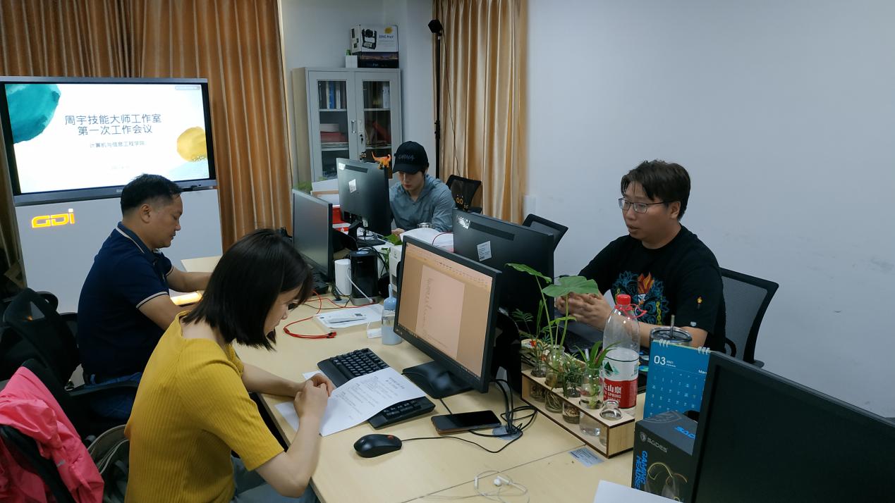4月25日,广东工贸职业技术学院计算机与信息工程学院周宇技能大师工作室在虚拟现实与数字媒体系204室举行了第一次工作会议,虚拟现实与数字媒体系主任周宇老师主持了会议,计算机与信息工程学院党支部书记张宁,计算机学院黎少、张坡、张冬兰、张宇辰、俞雪娇、袁佳老师,校团委汤静老师出席了会议。