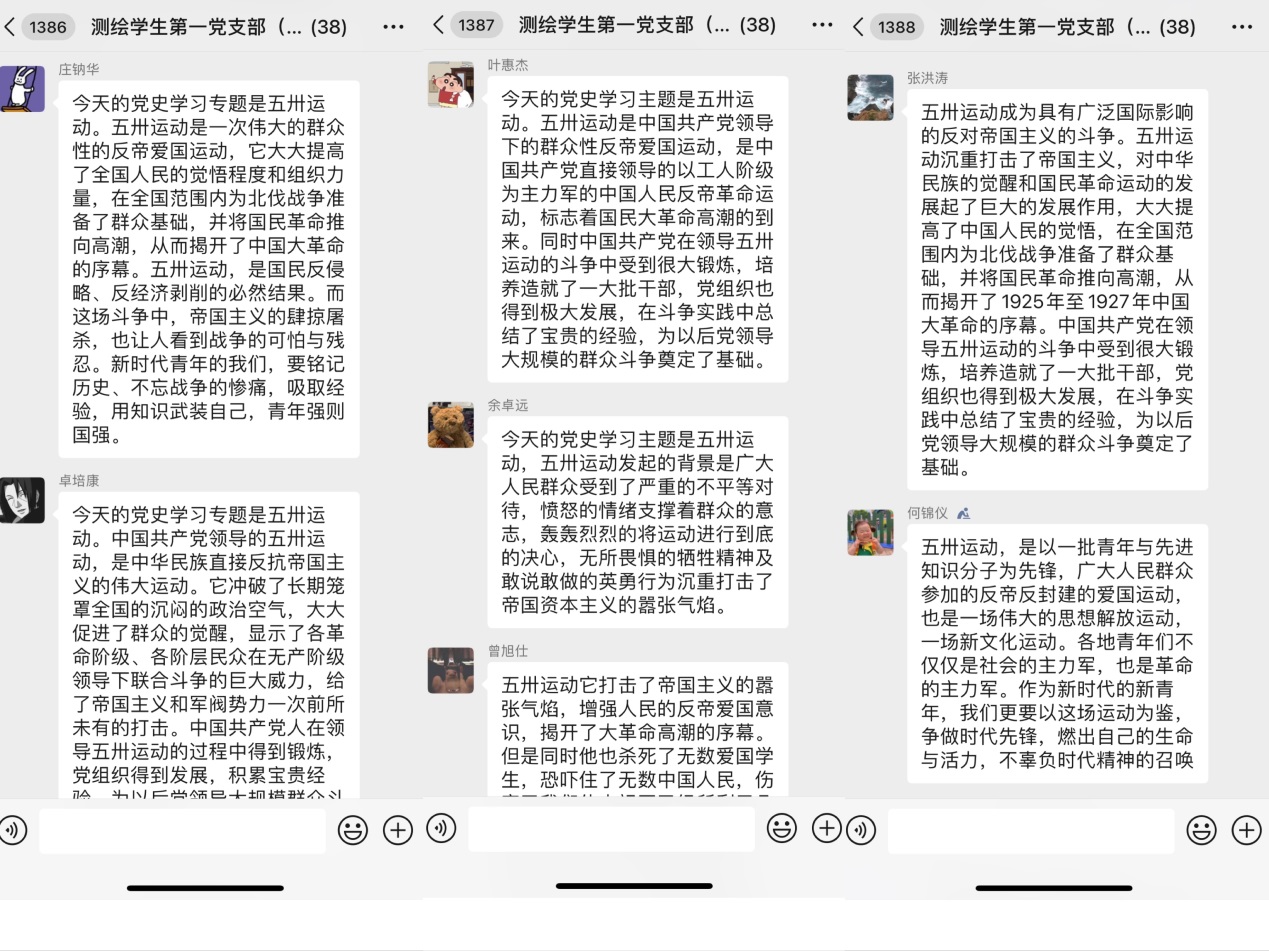 在学习结束后,学生党员在支部“移动微课堂”进行了讨论,支部党员对本次的学习内容进行了讨论。