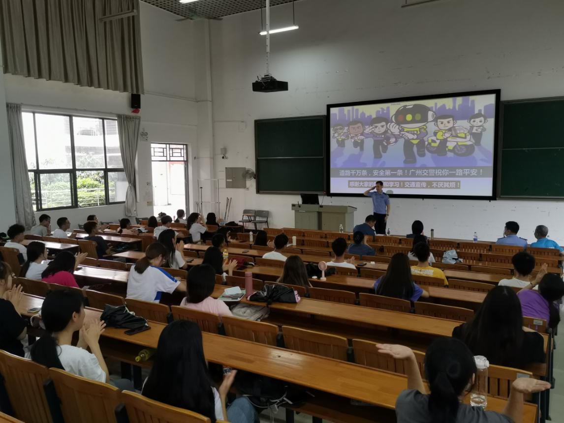 在讲座中,潘阳警官讲述了驾驶人责任、交通法规、驾驶交通安全与常见交通违章问题等三方面内容,通过引入现实案例,全面生动地警示了遵守交通法规的重要性,较好地帮助学生强化了交通安全意识,提升了遵守交通法规的自觉性。胡智峰科长从学生学车角度进行了学车消费提醒分享,从学生实际需求出发,为学生学车选择保驾护航。最后,张展洲科长进一步强调了交通安全的重要性及欢迎同学们到广州市车管所考取驾驶证。