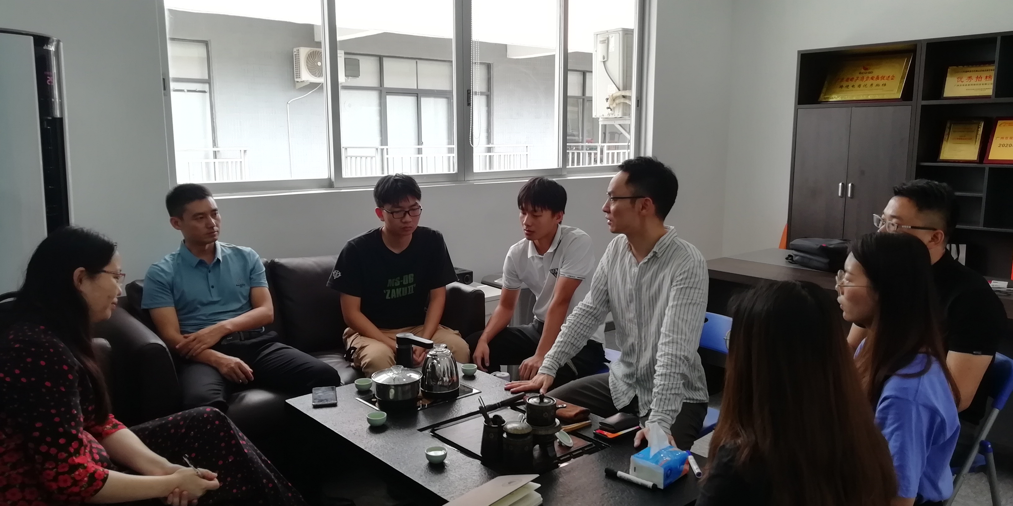 为了加强校企合作,拓宽毕业生就业渠道,了解就业市场需求,5月20日下午,经济贸易学院党总支副书记龚云、副院长蒋晶、办公室主任邓彩云一行前往广州市双拾壹网络科技有限公司进行就业市场开拓和考察调研,看望在公司工作的10名毕业生。公司总经理骆尧给予了热情接待。