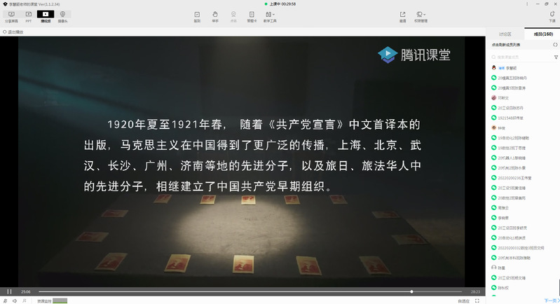 为深入学习贯彻习近平总书记在党史学习教育动员大会上的重要讲话精神,加深入党积极分子对马克思列宁主义理论体系认识,6月10日晚7:00,机电工程学院党总支组织第36期入党积极分子党课培训班学员通过腾讯课堂观看教育片——《理想照耀中国》,此次党课由机电工程学院学生第一党支部书记李慧颖主持。