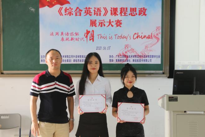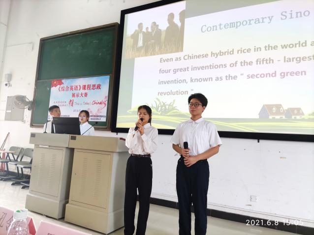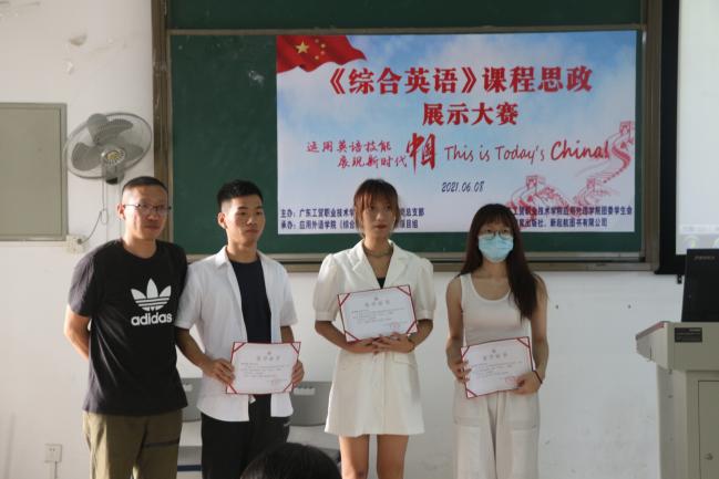 2021年6月8日,由应用外语学院《综合英语》课程思政项目组承办的课程思政英文展示大赛在明德楼2区104举行。本次大赛的目的是为提高商英专业学生的英语口语水平和跨文化交际能力,促进英语学习,锻炼英语口语,展示英语口语水平;同时为加深同学们对新时代中国发展的认识,培养年轻学生对中国国情和文化的认同感,增强在跨文化交际中的优势和自信心。本次比赛现场邀请到了马克思主义学院的晏意华老师、机电工程学院的孔令叶老师以及外语学院英语系主任肖铁蕾老师和钟文老师作为比赛的评委。