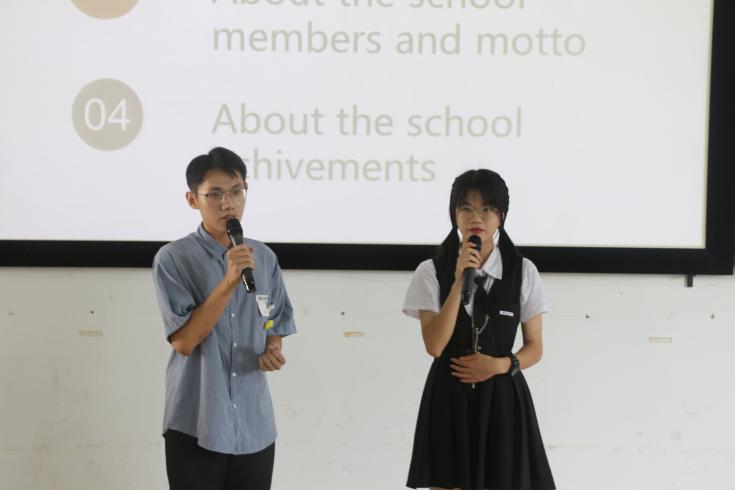 本次活动还邀请了目前正在我们学校机电学院学习的来自赞比亚、印度尼西亚和吉尔吉斯斯坦的留学生来到比赛现场。留学生代表麦星泽(Michael)、安德烈(Andrea)、刘浩(Elaman)同学也为我们带来了精彩的PPT演示,向我们介绍了他们的国家的风景、民俗等国外文化。在他们演讲结束后,肖铁蕾老师亲切地送了他们具有中国特色的“红包”作为纪念品。