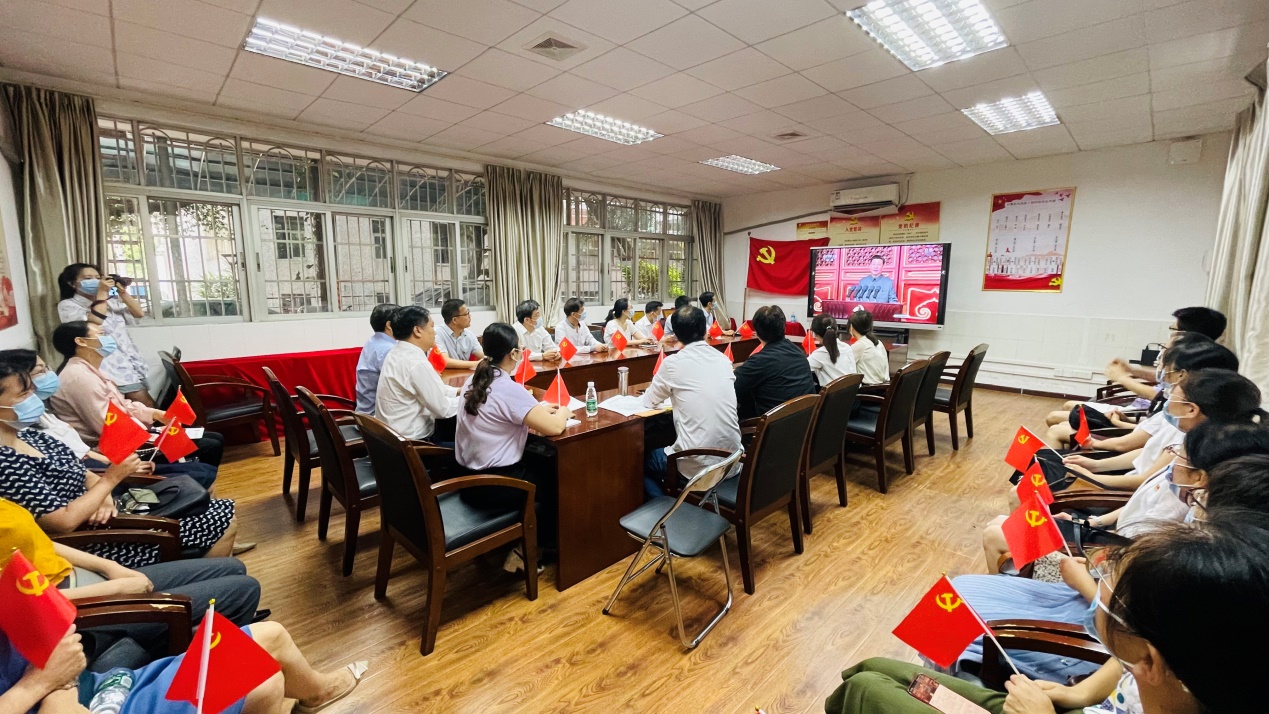 看完直播,师生党支部组织了座谈会活动,同志们围绕习近平总书记的重要讲话展开了讨论。党总支书记张宁说到,自开展党史学习教育以来,自己一直盼望建党百年华诞这一天的到来。今天总书记向我们回顾了中国共产党百年奋斗的光辉历程,展望中华民族伟大复兴的前景,并多次提到要求以史为鉴、开创未来。我们广大党员,应当立足新起点,适应新形势,不忘初心、继续前进;更加紧密地团结在以习近平同志为核心的党中央周围,团结一致,开拓奋进,为新征程做出更大贡献,为实现“两个一百年”奋斗目标、建成富强民主文明和谐的社会主义现代化国家、实现中华民族伟大复兴的中国梦不懈奋斗。