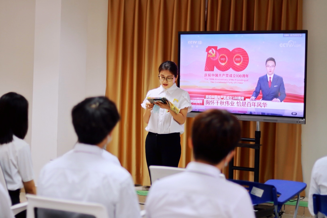 师生党员通过集体朗诵为党的100岁生日送祝福