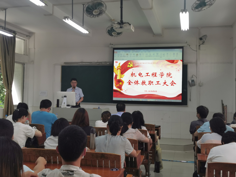 6月29日,机电工程学院于天河校区教学楼202课室召开了全体教职工会议。机电工程学院领导班子及全体教师参加会议,会议由机电工程学院党总支书记邵超城主持。