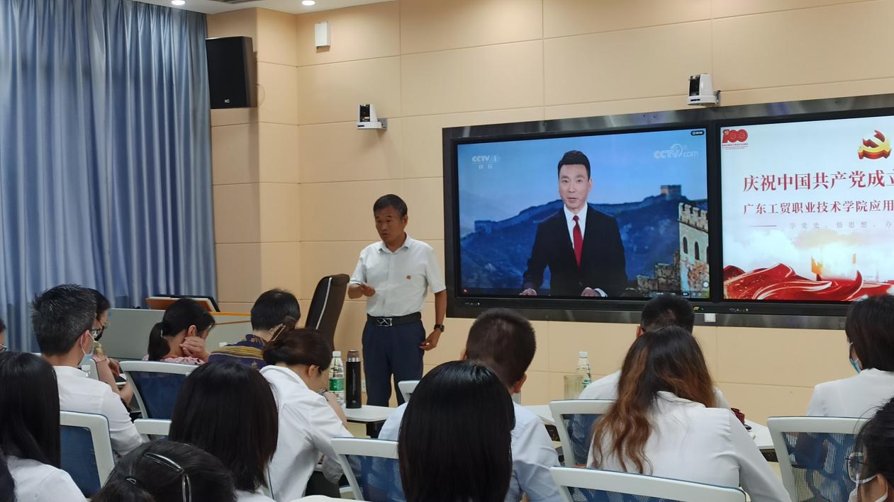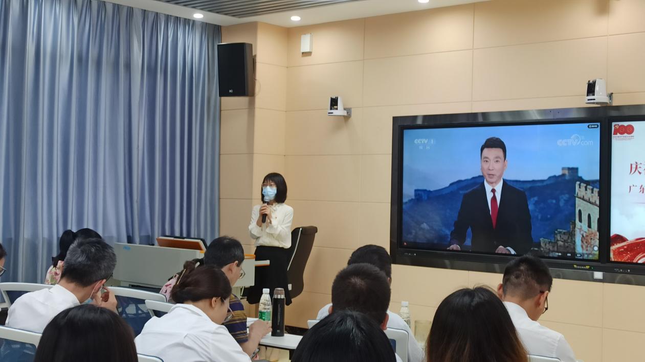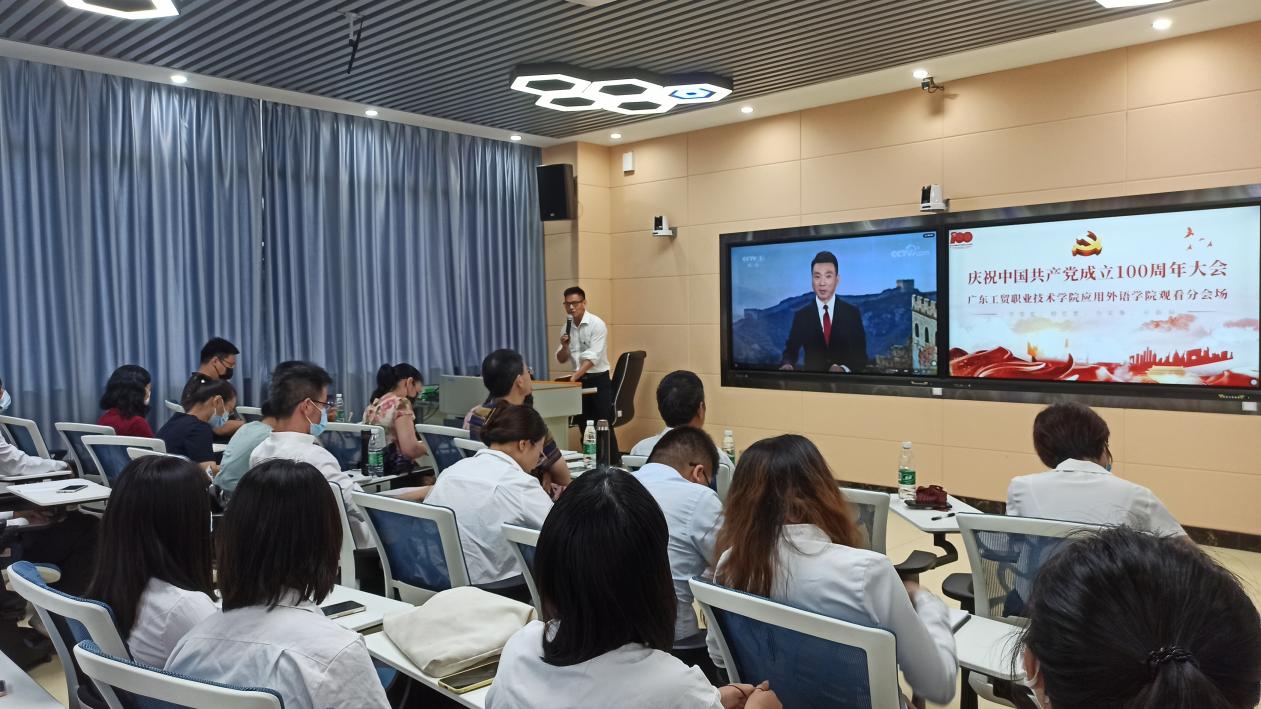 7月1日,庆祝中国共产党成立100周年大会在北京天安门广场隆重举行。中共中央总书记、国家主席、中央军委主席习近平发表重要讲话,应用外语学院党总支组织学院党政领导班子及全体师生党员60人于明德楼1区316集中观看直播。直播结束后,外语学院随即召开学习习近平总书记在庆祝中国共产党成立100周年大会上重要讲话精神师生座谈会,学院党总支负责人、班子成员、师生党支部书记及学生党员代表分享了聆听习近平总书记重要讲话的所思所想所感。会议由学院党总支负责人、院长彭枚芳主持。