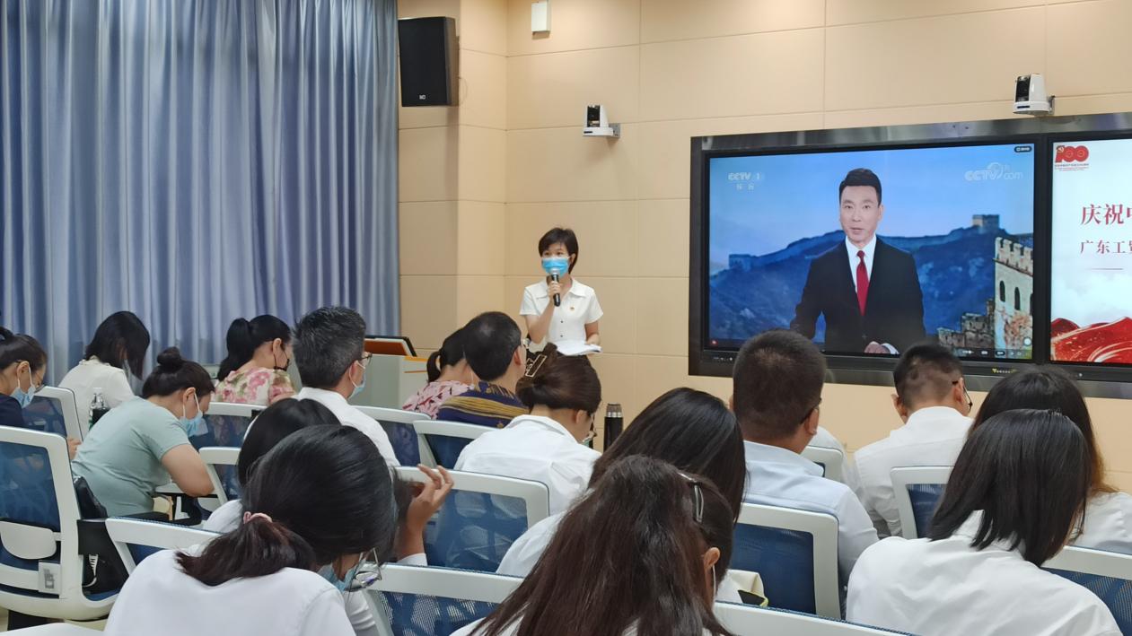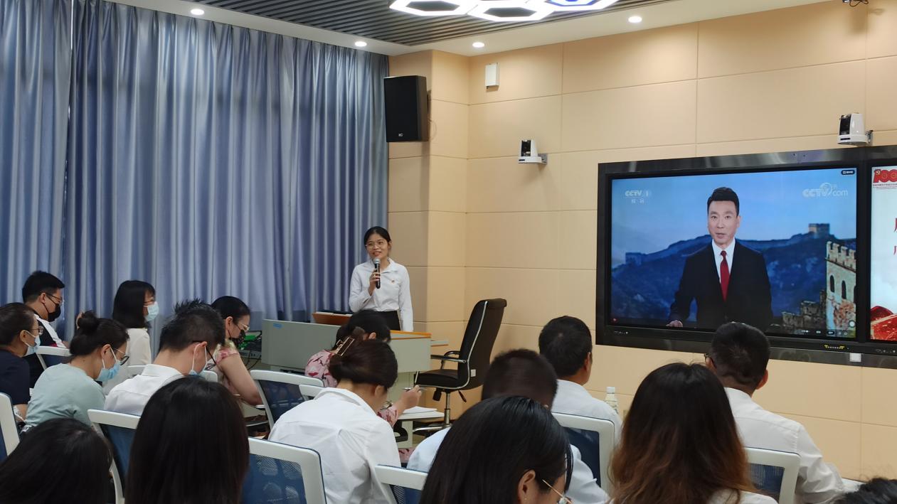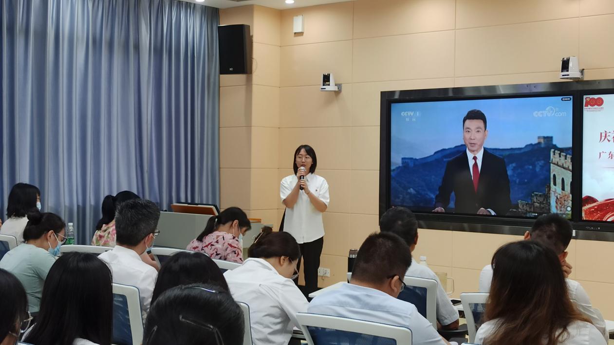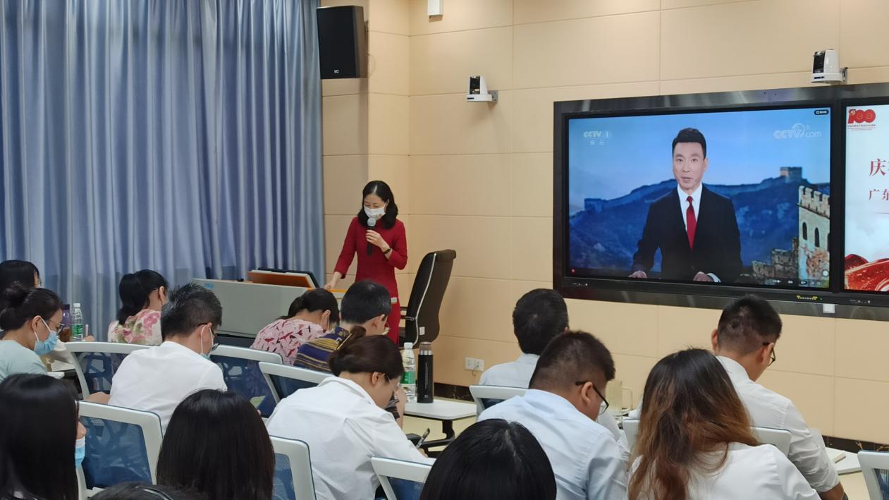 7月1日,庆祝中国共产党成立100周年大会在北京天安门广场隆重举行。中共中央总书记、国家主席、中央军委主席习近平发表重要讲话,应用外语学院党总支组织学院党政领导班子及全体师生党员60人于明德楼1区316集中观看直播。直播结束后,外语学院随即召开学习习近平总书记在庆祝中国共产党成立100周年大会上重要讲话精神师生座谈会,学院党总支负责人、班子成员、师生党支部书记及学生党员代表分享了聆听习近平总书记重要讲话的所思所想所感。会议由学院党总支负责人、院长彭枚芳主持。