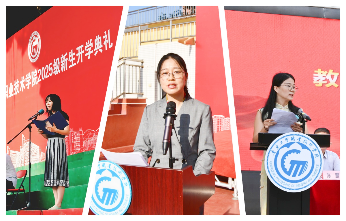 经济贸易学院专任教师廖文芳(白云校区)、计算机与信息工程学院专任教师吴倩(天河校区)、艺术与教育学院专任教师王丽丽(荔湾校区)分别作为教师代表发言。他们在发言中深情寄语新生,老师们将是大家最坚实的后盾——既是同学们学业上的严师,也是成长路上的益友。鼓励新生们以“笃学”为墨,在实践的画卷上挥洒自如,以“求真”为尺,在成长的道路上行稳致远。珍惜未来三年的时光,用汗水浇灌收获,用技能点亮未来,习得一技之长,掌握安身立命的本领,锤炼工匠精神,为未来的职业发展打下坚实基础。