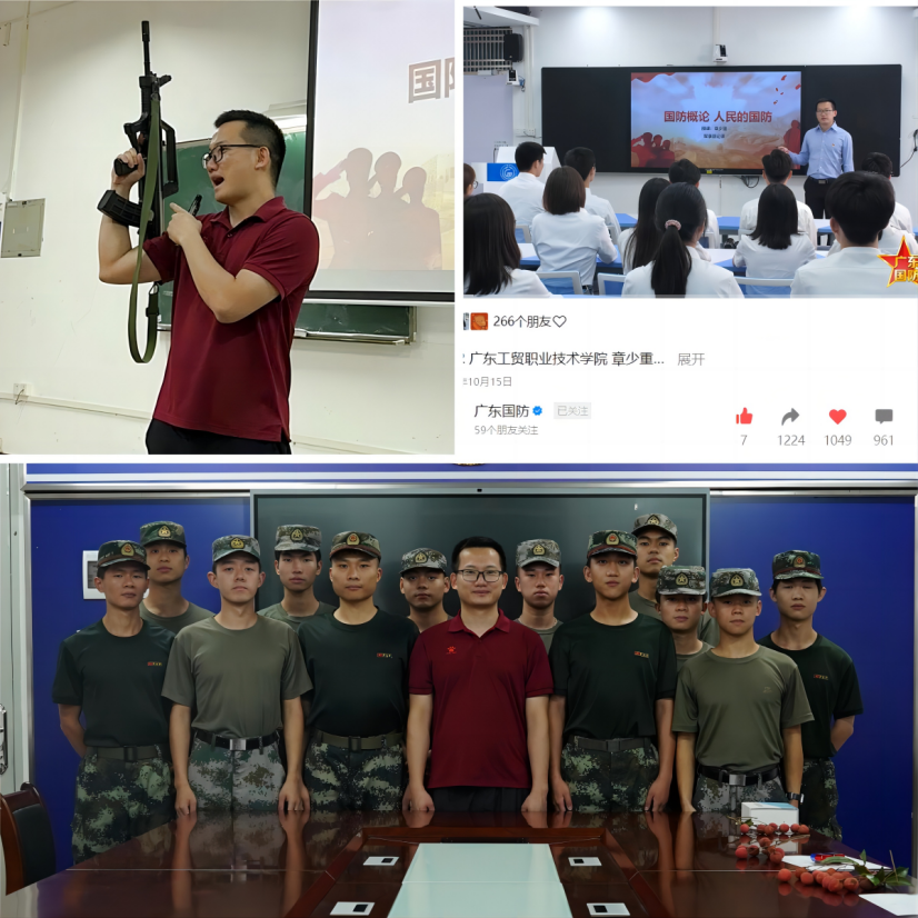 在“大思政”教育格局下,他积极开拓网络育人新空间,率先带领团队创立学院官方视频号,紧扣社会热点策划制作宣传内容,同时鼓励学生主动投稿参与创作,让思政教育从“单向灌输”变为“双向互动”。结合军事理论课程教学需求,他精心制作系列微课并发布于主流新媒体平台,单条内容浏览量破万、转发近千次,精准契合当代大学生碎片化信息获取习惯,让国防教育融入日常。此外,他还利用闲余时间化身抖音主播,在线为学生答疑解惑、分享成长经验,以平等对话的姿态拉近与学生的心理距离。让思政内容真正“源于生活、融入生活”,成为学生愿意看、能接受、有共鸣的鲜活养分。