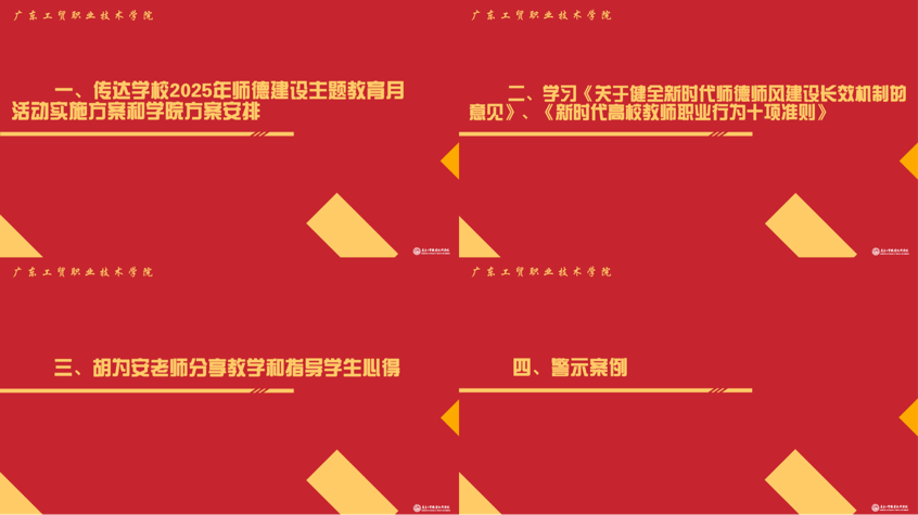 最后,全体教师集中观看了师德师风警示案例视频。案例直击人心,具有极强的警示作用,让在场教师深受触动。观看结束后,教师们纷纷表示将以警示案例为镜鉴,在今后的工作中时刻绷紧师德师风这根弦,始终坚守教育初心,严格恪守职业道德,坚决杜绝各类师德失范行为,以实际行动维护教师队伍的良好形象,为学生的成长成才树立正面榜样。