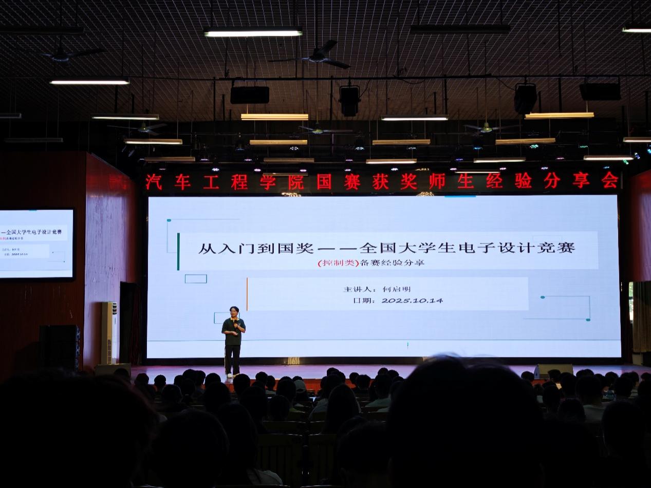 为帮助学生深入了解学科竞赛、明确备赛方向。汽车工程学院于2025年10月14日下午在明德楼2-105举办国赛获奖团队经验分享会。学院学工办主任桂晶晶、获奖指导教师何启明、获奖学生代表及2025级400余名学生参加。