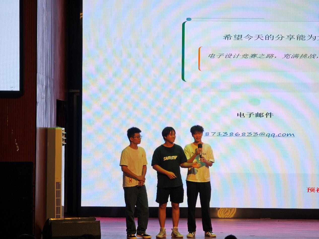 随后,国赛获奖指导教师何启明作为核心分享人,围绕全国大学生电子设计竞赛展开详细讲解。分别从赛事类别、备赛要点、赛中策略、及赛后测评等方面,分享了团队从入门到国赛获奖的全流程经验,强调“稳定硬件+模块化编程+高效协作”是成功关键。他指出竞赛不仅是能力的比拼,更是心态的较量;并教会学生在压力下保持冷静比传授知识更重要。何老师的分享引发在场师生强烈共鸣,现场掌声不断。