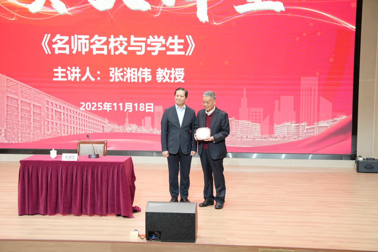 在讲座中,张湘伟教授以《名师名校与学生》为主题,回忆起他参加重庆大学建校90周年的九秩薪传“师者说”微论坛的情景,并结合自身一生的执教经历和丰富的行政管理经验,分享了学术感悟和育人心得。他举例阐述了办学宗旨和理念对名校建设的重要性,深刻提出名校、名师与学生三者的关联性。他强调,在当今时代背景下,教育工作者保持深厚的学术定力和良好教育风范尤其需要,要始终坚守育人初心,沉心问道,将培养学生健全人格与综合素养置于首位;要大力弘扬优良学风,营造潜心向学、诚实守信氛围;要重点帮助学生学业攻关,帮助学生掌握学习方法和养成良好学习习惯,从而真正肩负起为国家培育栋梁之才的使命。