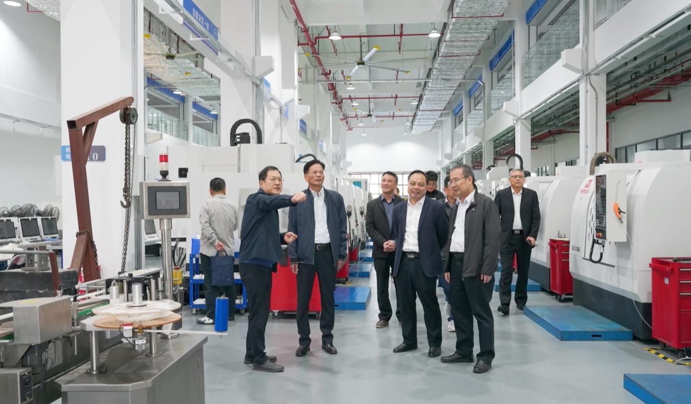 朱灿焕一行首先参观了校园,先后来到机电工程学院、测绘遥感信息学院,实地了解了“汇英班”开设情况,参观了1+X证书工业机器人考点,国家级虚拟仿真(VR)实训基地以及无人机实训等情况,通过现场观摩和听取介绍,广州现代信息工程职业技术学院一行对学校以党建引领教育教学高质量发展的实践,有了更直观、更深刻的认识。