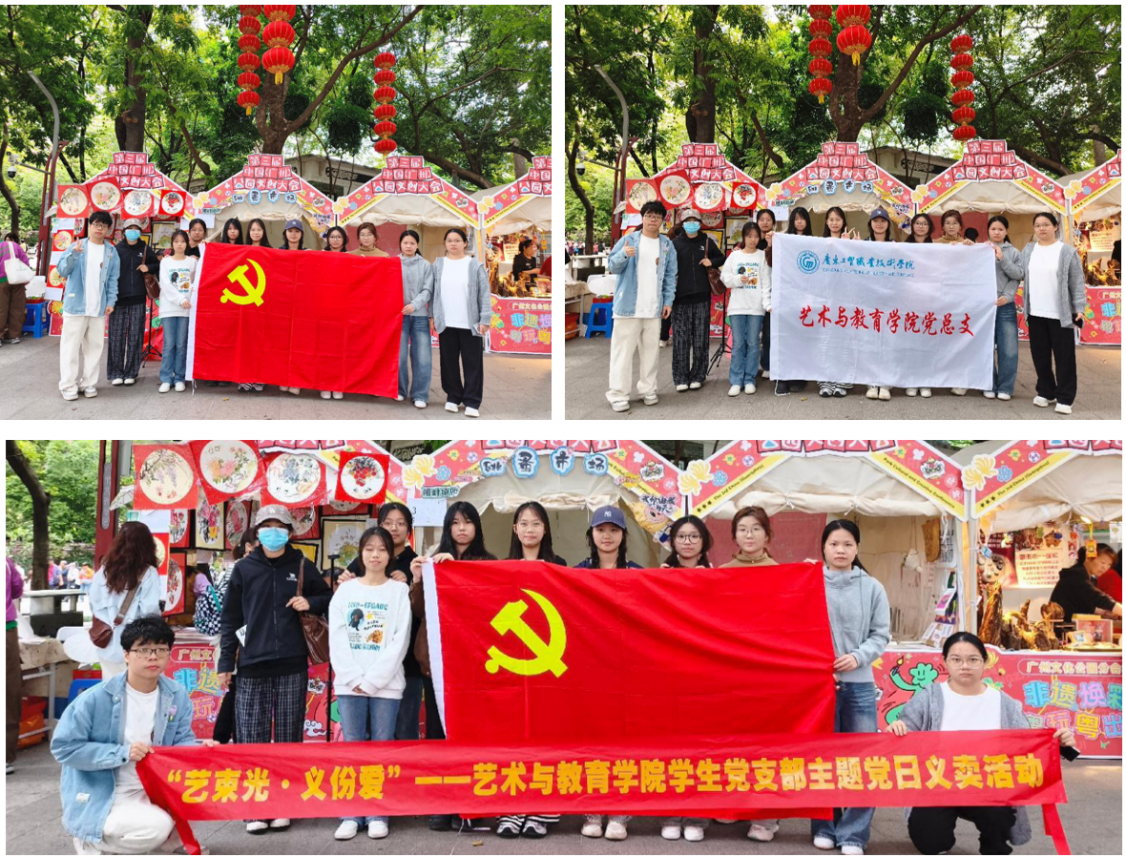 近日,第三届中国(广州)公园文创大会在广州文化公园盛大启幕,由艺术与教育学院师生党员和入党积极分子组建的爱心义卖小队惊艳亮相。为贯彻落实党的二十届四中全会精神,学院党总支开展“艺束光·义份爱”主题党日活动,以公益义卖为纽带,用实际行动践行初心使命,展现当代青年的赤诚担当,为这场文创盛会注入了满满的正能量。