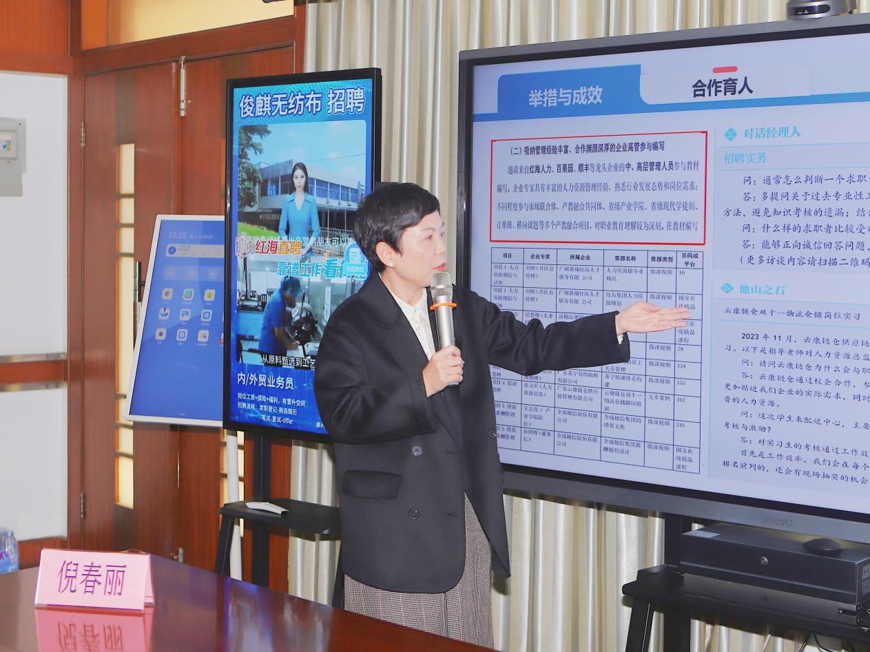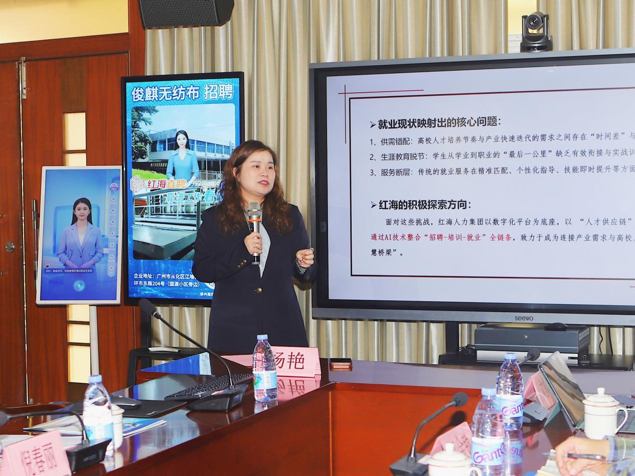 专题报告环节,红海人力集团副总裁杨艳以《AI赋能:大学生“招聘——培训——就业”智慧一体化模式构建与案例展示》为题,分享了AI技术在人才画像、个性化培训、全职业周期服务中的实践应用。广东工贸职业技术学院工商管理学院院长倪春丽则围绕《服务新质生产力:广州数字化产教联合体的创新实践与成效》,详解了学校通过“四个合作”“五金建设”深化产教融合的经验成果。