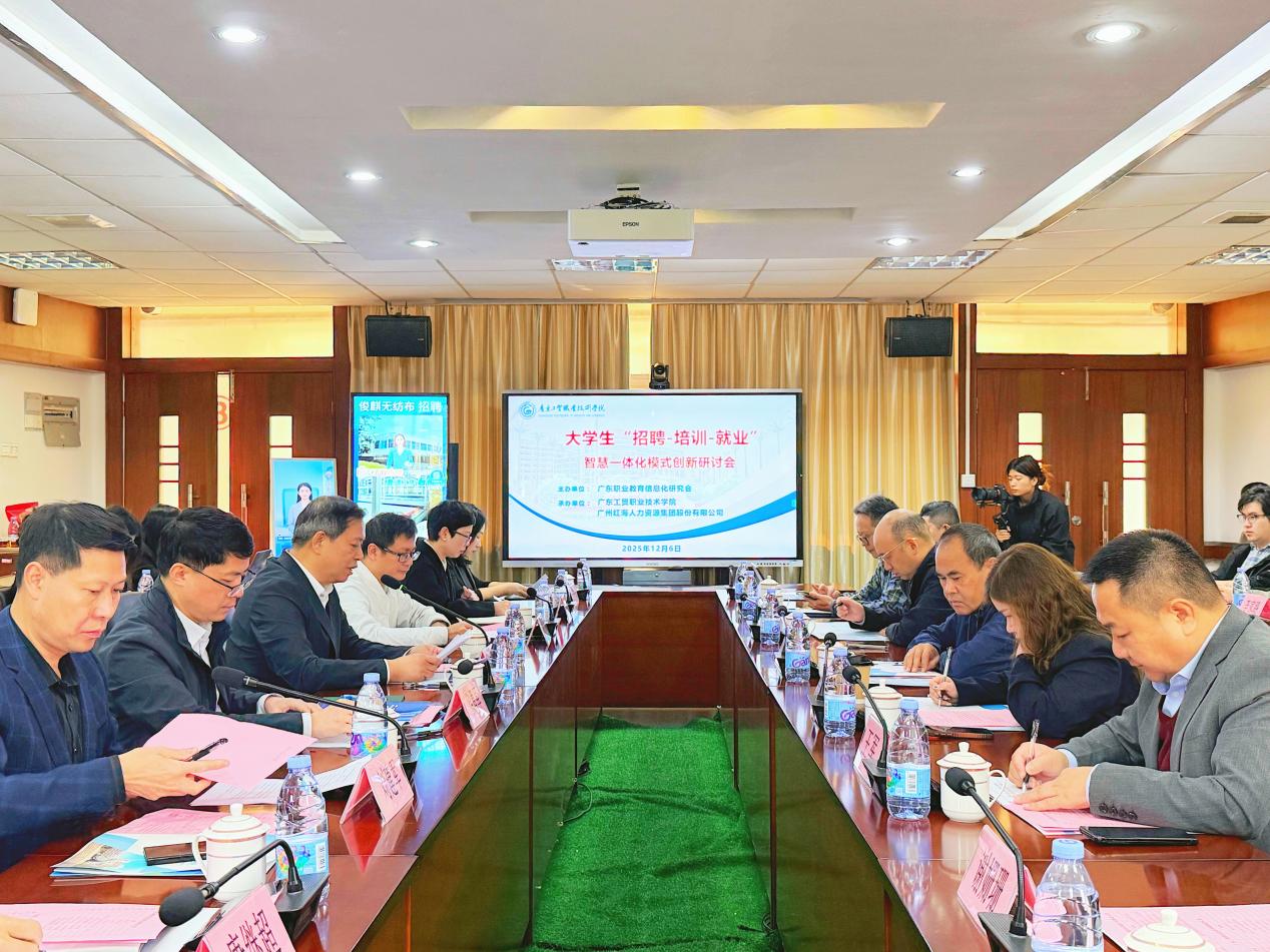 12月6日,由广东职业教育信息化研究会主办,广东工贸职业技术学院与广州红海人力资源集团联合承办的大学生“招聘——培训——就业”智慧一体化模式创新研讨会在广东工贸职业技术学院天河校区召开。研究会会员单位和企业代表,学校党委书记何汉武,党委委员、副校长徐勇军,相关职能部门、二级学院负责人及教师代表,红海集团代表等参加了本次研讨会。