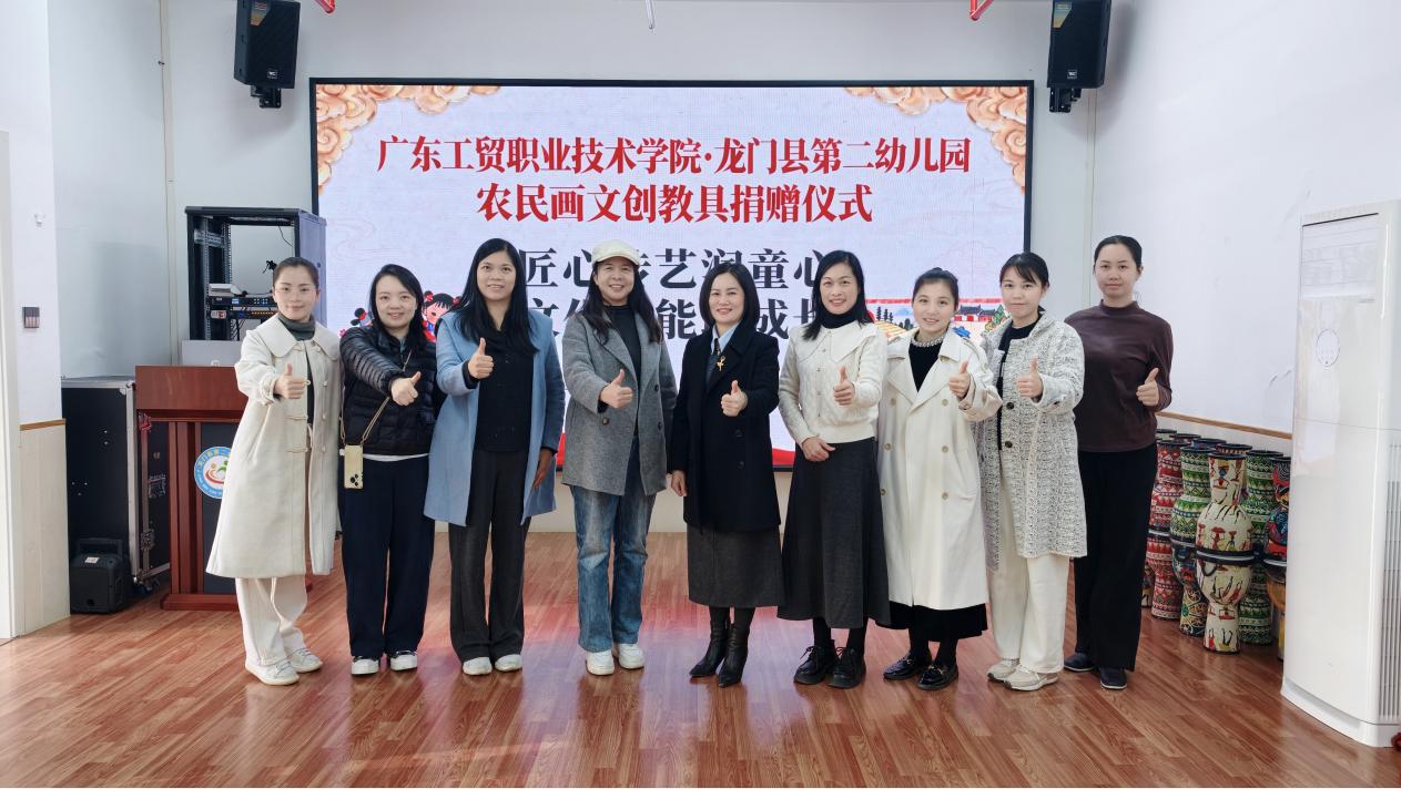 活动尾声,学院向龙门县第二幼儿园捐赠了由教师团队自主研发的系列农民画文创教具。这些教具不仅为幼儿园常态化、系统化开展非遗园本课程提供了坚实的物质支撑,更体现了高校专业资源对乡村教育的精准赋能。