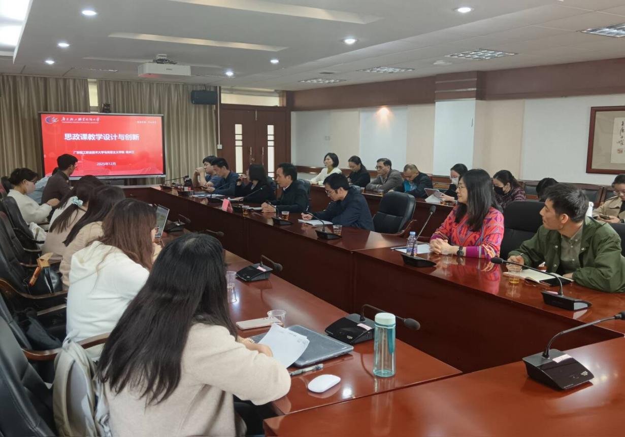 为进一步提升思政课教学质量与育人实效,落实立德树人的根本任务,12月4日,广东轻工职业技术大学马克思主义学院院长储水江教授莅临我院进行调研与教学指导。储水江教授深入课堂,听取了我院教师晏意华讲授的《形势与政策》课程。课后,储水江教授就“思政课教学的设计与创新”进行了专题讲座。本次会议由我院刘凤梅院长主持,马克思主义学院全体教师参会。