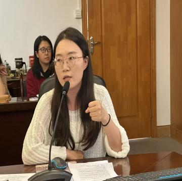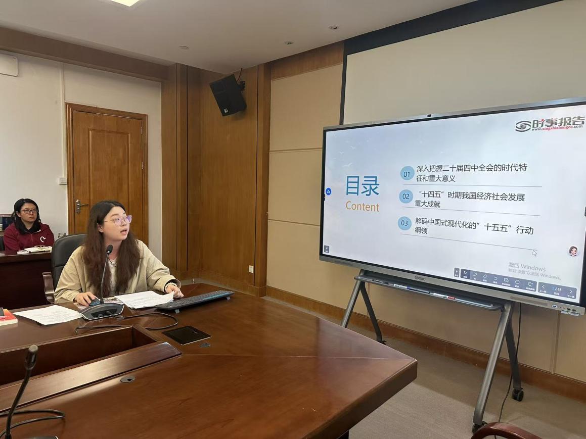 备课会的第五环节由广东工贸职业技术学院马克思主义学院教师尹哲怡老师开展教学展示,她展示的题目是学懂弄通党的二十届四中全会精神理解“十五五”规划。尹老师从深入把握党的二十届四中全会的时代特征和重大意义、“十四五”时期我国经济社会发展重大成就、解码中国式现代化的“十五五”行动纲领三个方面进行展示。