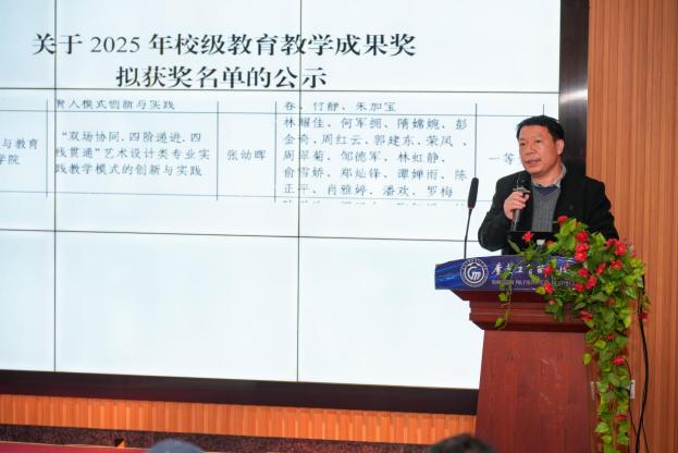 副院长彭金奇在教学工作报告中指出,2025学年学院教学运行规范有序,教学改革持续深化,实践教学成效显著,师生竞赛获奖颇丰,岗位实习扎实推进,为人才培养质量提升奠定了坚实基础。