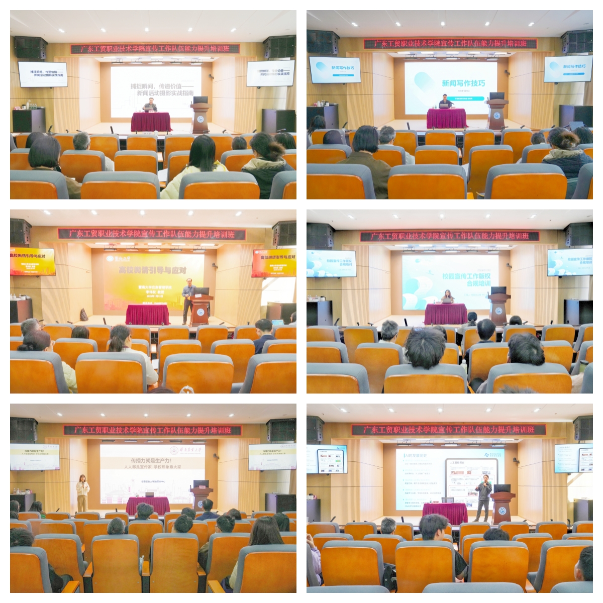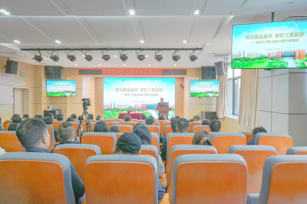 为深入学习贯彻习近平总书记关于宣传思想工作的重要论述,主动适应全媒体时代高校宣传思想工作新要求,助力学校高质量发展,1月13日至14日,由组织宣传统战部主办的以“树立精品意识 讲好工贸故事”为主题的宣传队伍能力提升培训班在白云校区成功举办。学校党委副书记揭英荣出席本次培训班开班仪式并进行动员讲话。各党总支(直属党支部)、党支部宣传委员,全体通讯员及部分学生宣传骨干参加了学习。