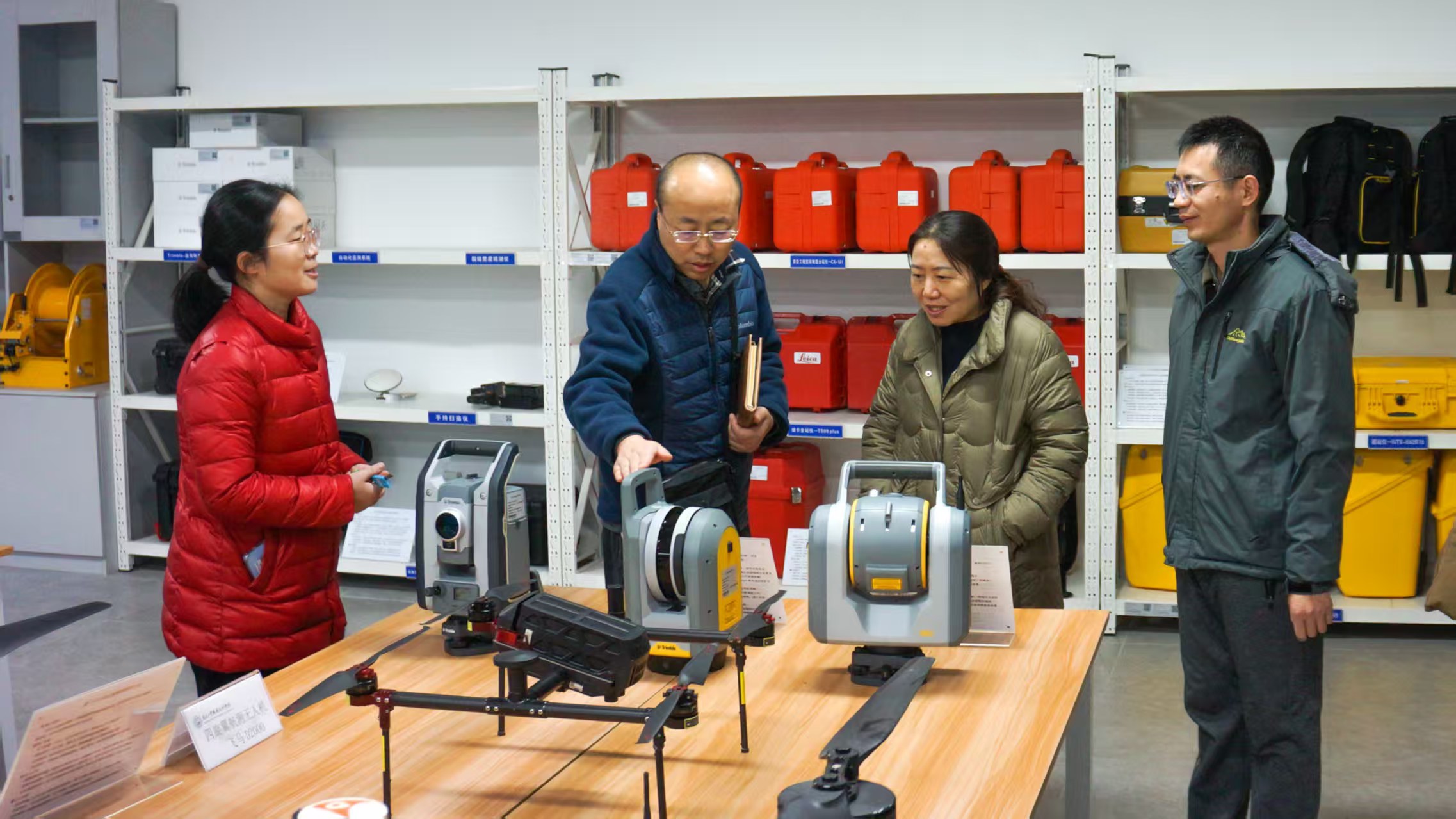 首先,黄铁兰陪同嘉应学院一行走进测绘学院的各个实训室和国家虚拟仿真实训基地。在现场讲解人员的引导下,大家先后参观了全站仪、水准仪、无人机、三维激光扫描仪等设备,实地操作了地形测量虚拟仿真模块、无人机航测模拟系统、GIS空间分析实训平台等先进的虚拟仿真教学资源。通过沉浸式体验与实操演示,嘉应学院的领导和老师详细了解了我校测绘地理信息类实训设备类型和规模、管理方法和实训项目开设情况,对我校利用虚拟仿真技术突破传统测绘实训时空限制、降低实训成本、提升实训效率和人才培养质量等方面的成效予以高度肯定。