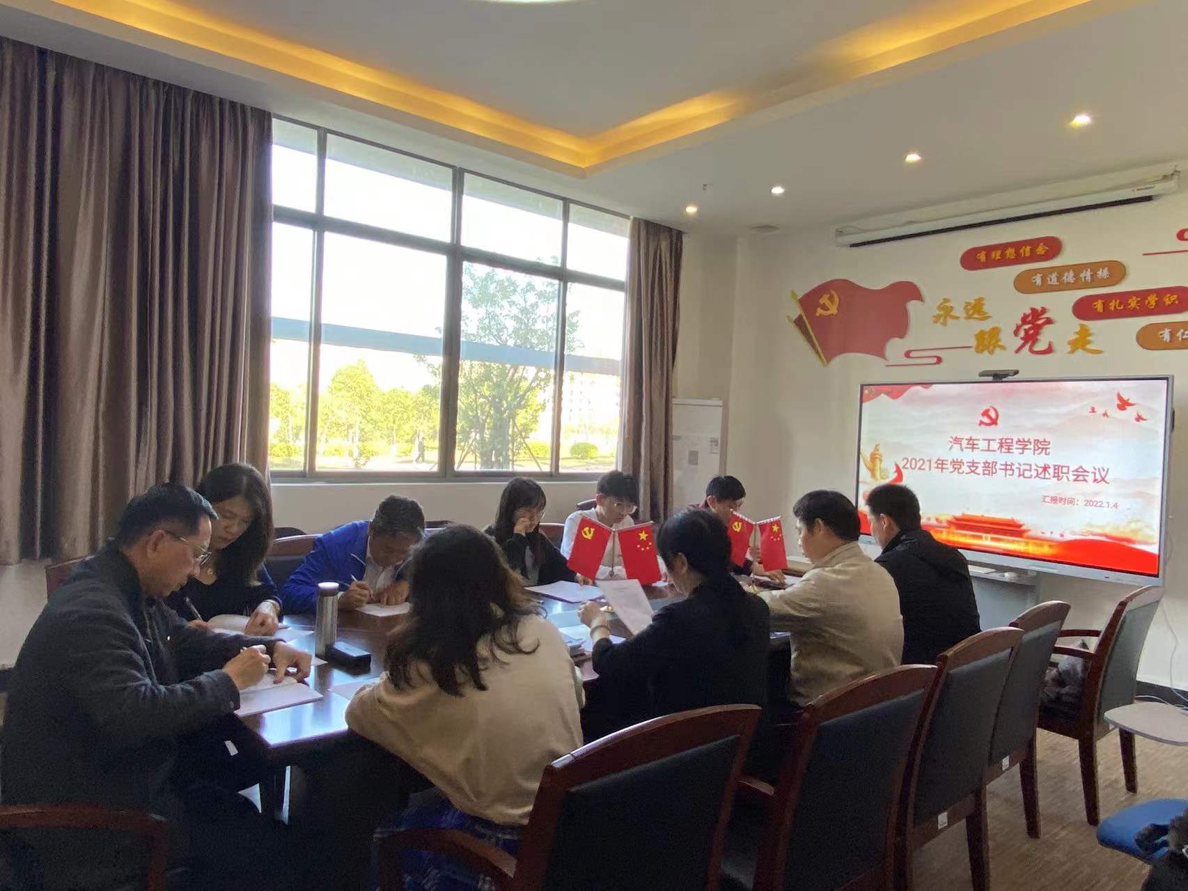 为全面贯彻习近平新时代中国特色社会主义思想,压紧压实基层党建工作责任,根据《中共广东工贸职业技术学院委员会2021年度学校基层党组织书记抓党建述职评议考核工作方案》(粤工贸院党字〔2021〕78号)文件精神,汽车工程学院党总支于2022年1月4日在白云校区教师发展中心召开2021年度基层党支部书记述职考核会议,对学院两个教师党支部和一个学生党支部进行考核。学校党委委员、副校长杜汉清,汽车工程学院党总支全体成员、各师生党支部书记以及党员代表参加了会议。