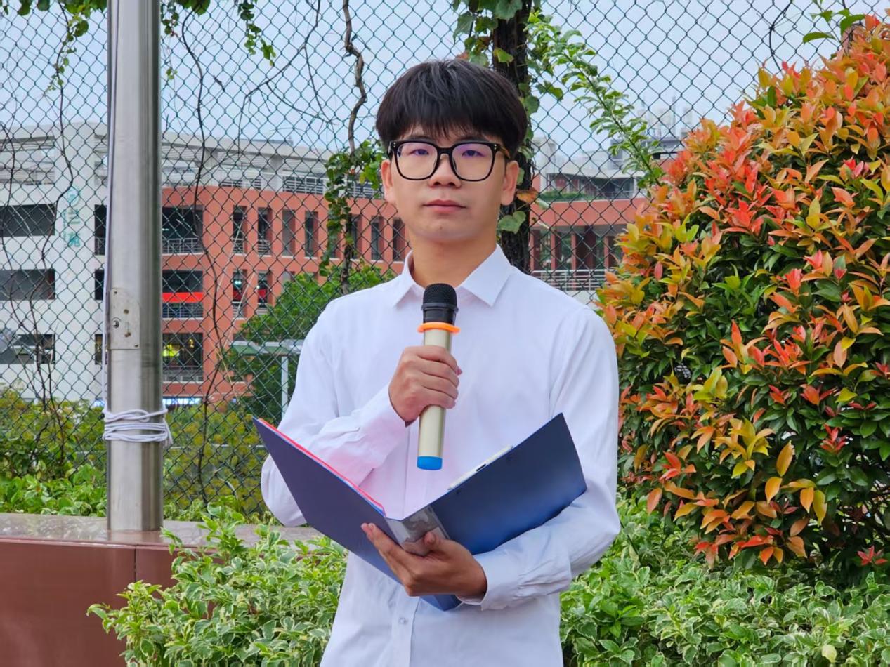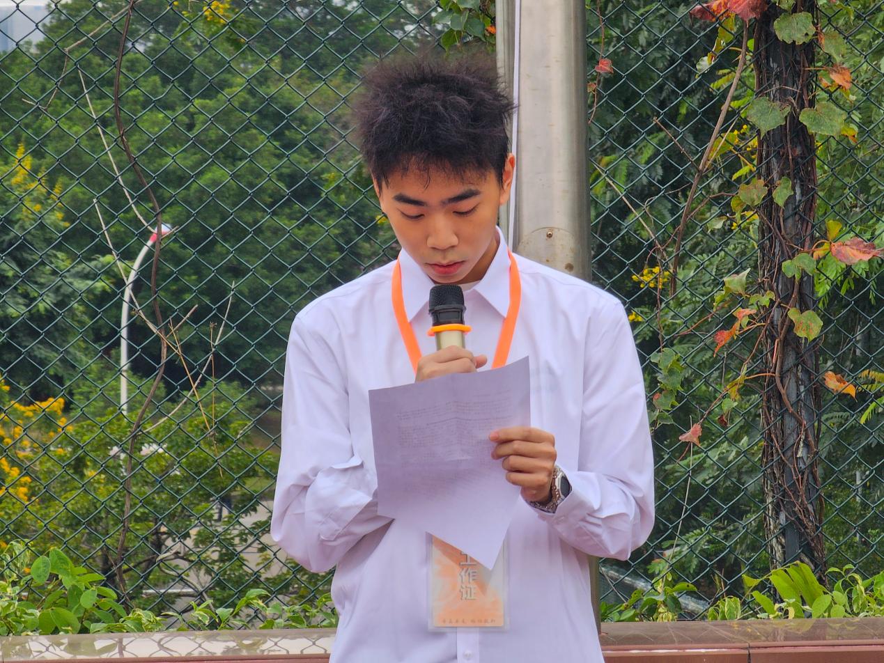 升旗现场 接下来,学生代表刘东涛进行国旗下讲话。他以“青年强,则国家强”为核心,分享了对党的二十大精神的理解与感悟。他表示,全面建设社会主义现代化国家的宏伟目标,并非遥不可及的宏大叙事,而是融入在课堂专注听讲、课间友善互助、考试坚守诚信的点滴行动中,作为学生,我们应当用敬业态度储备知识、用奋斗姿态追逐梦想,把学习党的二十大精神的热情,转化为晨读时朗朗的书声,转化为实验室里反复试验的耐心,转化为面对挫折时永不言弃的韧性。让我们以党的二十大精神为灯,在学习中锤炼本领,在实践中涵养品格,把青春的力量融入民族复兴的征程,用坚定步伐奔赴更辽阔的未来!