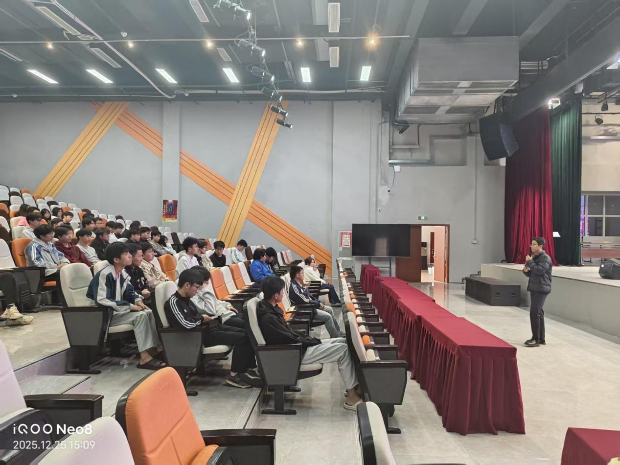 2025年12月25日下午,汽车工程学院2027届集成电路产业人才卓越(创新)班宣讲会在学生活动中心顺利举办。深圳市鹏城产教融合服务有限公司史经理、汽车工程学院辅导员林诺怡、康慧老师出席活动,24级汽车电子技术专业、汽车智能专业、新能源专业、电信专业全体学生共计约400人参加宣讲。