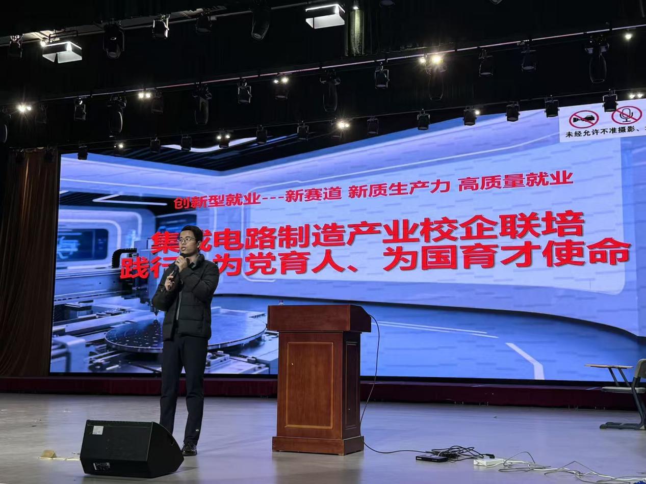 会议现场 宣讲会上,史经理聚焦行业发展趋势,重点解读了集成电路产业人才缺口现状,结合汽车智能化、新能源化发展方向,分析了技术迭代对人才能力提出新需求。随后,史经理系统介绍了卓越(创新)班的培养模式与培养方案,从校企协同授课、企业沉浸式实训等多个维度,清晰阐述了班级的培养特色与优势,为学生提供了清晰的成长路径。