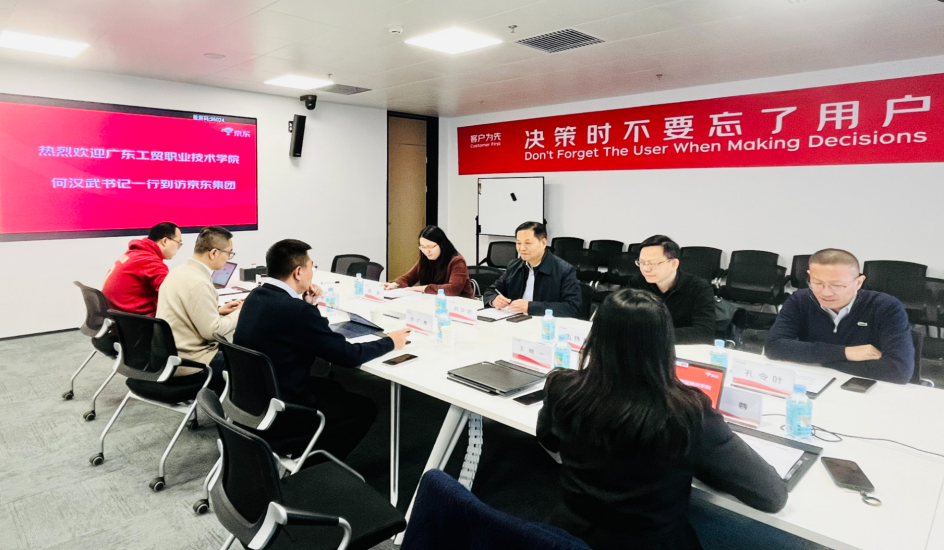 本次调研旨在进一步落实广东省教育厅与京东集团达成的战略合作,围绕学科建设、人才培养、技术创新与成果转化等领域,提速“京东数智商业产业学院”建设,助力学校第二轮“双高计划”提质增效,构建校企协同发展新格局。