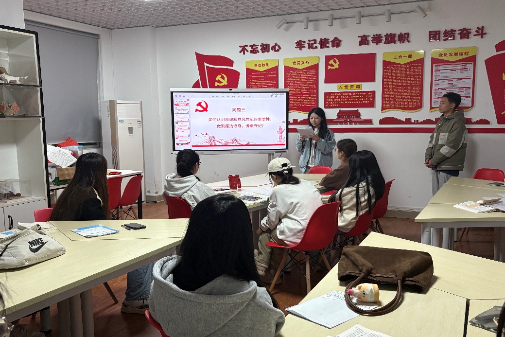 为深入学习宣传贯彻党的二十届四中全会精神,进一步加强对入党发展对象的培养教育,明确其入党初心与使命,强化其党性修养与责任担当。2025年11月27日,工商管理学院党总支组织2025年第二期发展对象培训班学员开展学习研讨交流会。