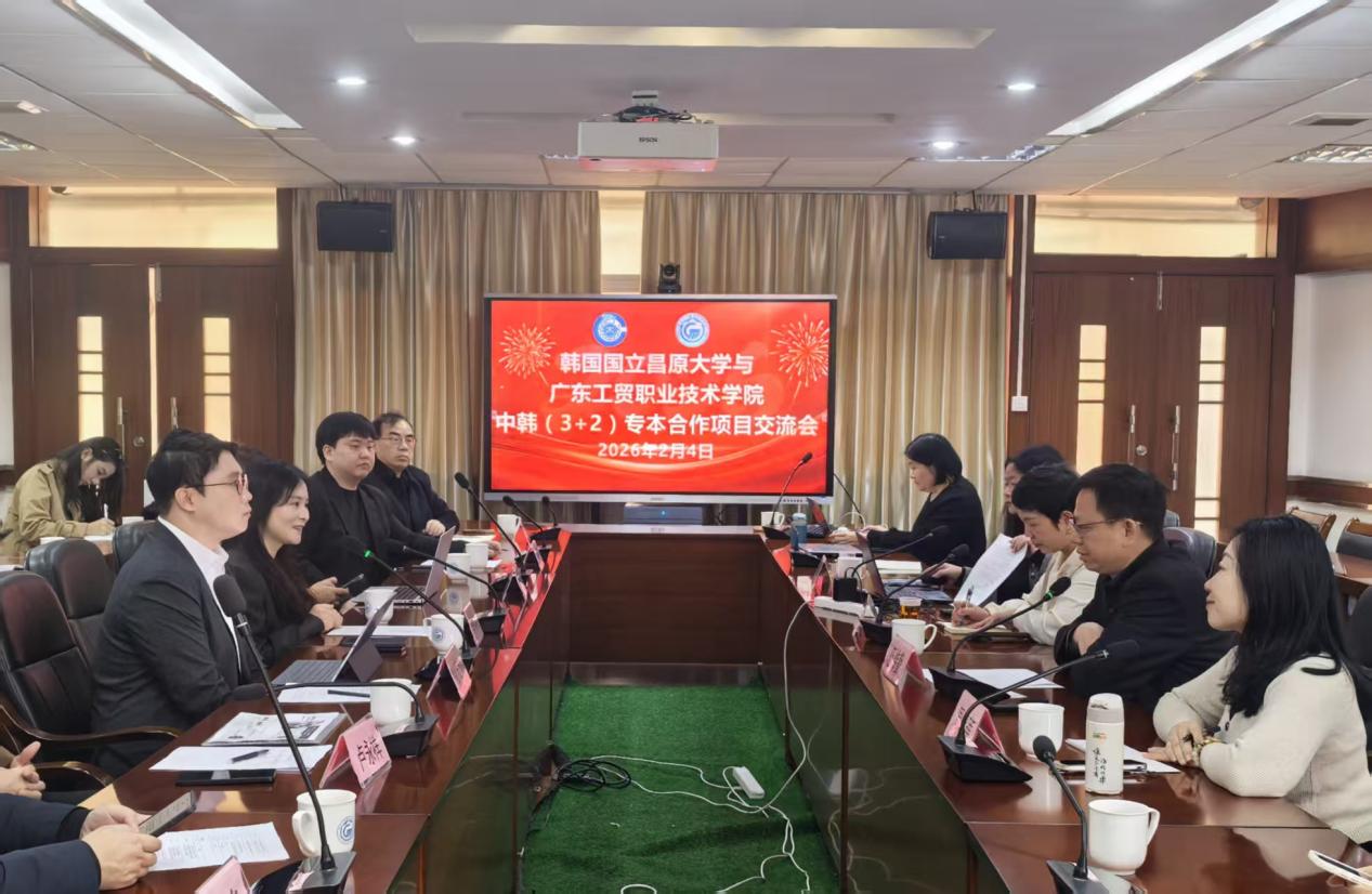 24日上午,韩国国立昌原大学国际自选专业学部系主任金正勋教授一行到访广东工贸职业技术学院,双方围绕中韩(3+2)专本合作项目等议题开展了交流。此次来访正值学校积极融入全国金融装备产业共同体、深入推进新时代广州数字化产教联合体建设的关键阶段,为学校的产教融合与国际合作注入了新的动力。一同到访的还有佛山市韩商会会长裴保均、广州市百海教育咨询有限公司董事长卢永祥等国立昌原大学中国地区办学机构代表。学校对外交流合作部部长伍炜勤、工商管理学院党总支书记周清莲、院长倪春丽、副院长胡建平等校方代表参与接待与交流,并就相关产业与教育合作机遇进行了探讨。