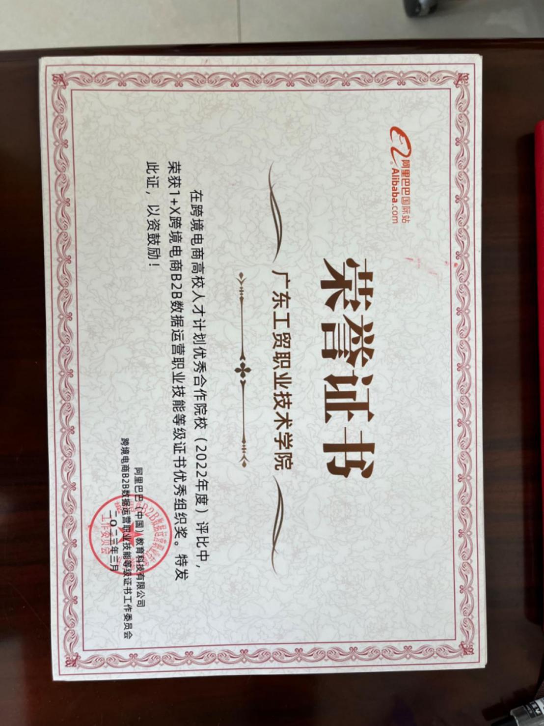 日前,阿里巴巴(中国)教育科技有限公司公布了跨境电商高校人才计划优秀合作院校奖项。我校荣获2022年度1+X跨境电商B2B数据运营职业技能等级证书优秀教学成果奖和优秀组织奖。