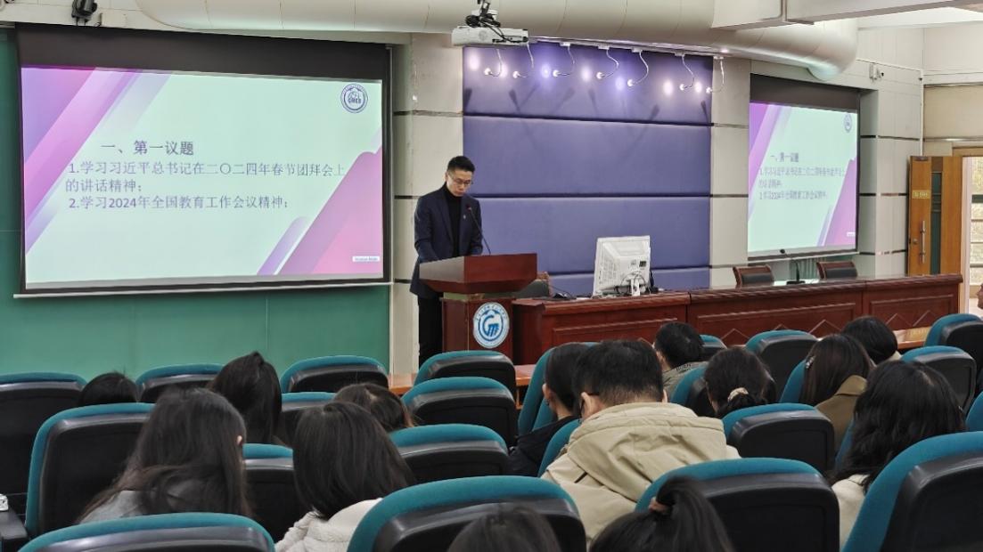 律转鸿钧、四序递迁,甲辰新景、梦想无垠。为认真学习贯彻习近平新时代中国特色社会主义思想,坚定不移走好高质量发展之路,推进经贸学院各项工作取得新的突破,2月25日上午,经济贸易学院2023-2024学年第二学期全体教职工大会在天河校区西区综合楼5楼报告厅召开,学校党委委员、副校长唐毓秋及经贸学院全体教职工出席会议。会议由经贸学院党总支书记李繁主持。