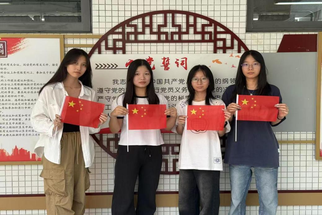 红旗猎猎映初心,青春灼灼担使命。为深入学习贯彻习近平新时代中国特色社会主义思想,庆祝中华人民共和国成立76周年,9月29日,经贸学院学生第一党支部在明德楼思政教育基地开展"我与国旗合影"主题党日活动,以沉浸式红色教育实践引导青年党员厚植家国情怀,凝聚奋进力量。