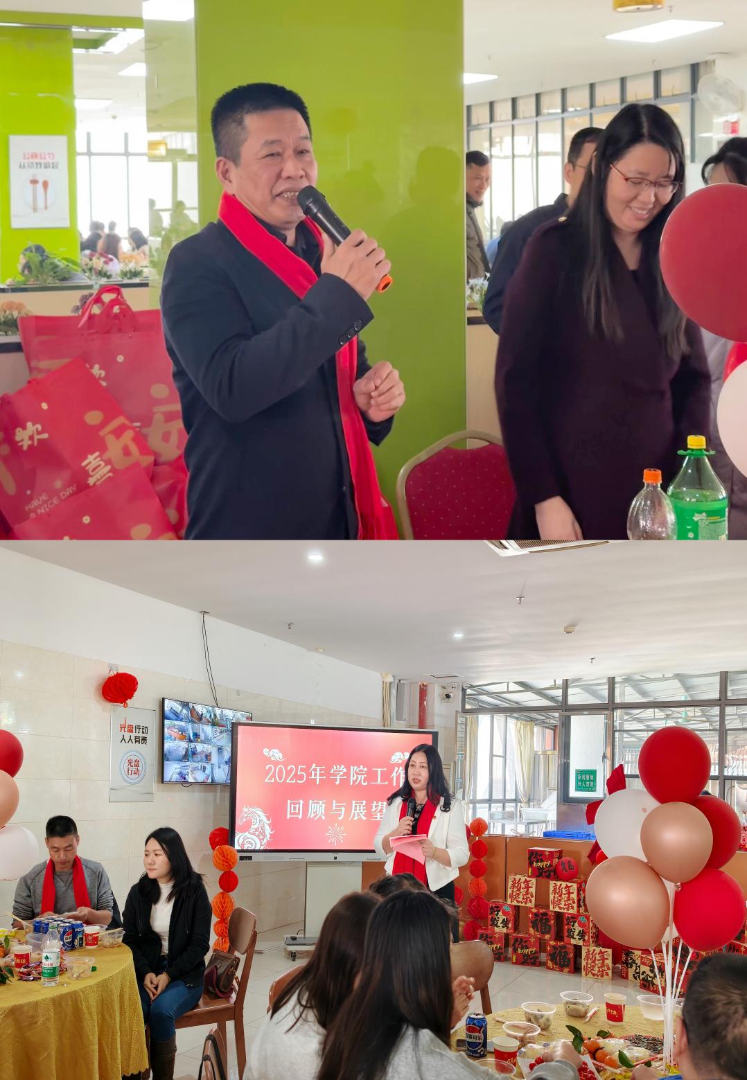 会上,许斯华系统总结了学院年度工作亮点。她表示,过去一年学院坚持以党建为引领,持续深化理论武装与组织建设,推动党建工作与业务发展深度融合。课程建设与教学改革成效显著,科研工作取得新突破,社会服务能力持续增强,校企合作深度拓展。学院将始终坚持强化党建引领,守正创新、锐意进取,全面提升人才培养质量,奋力开创高质量发展新局面。