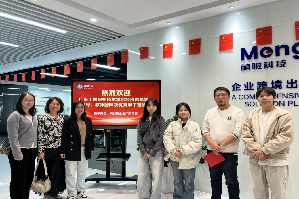 2026116日,广东工贸职业技术学院经济贸易学院跨境数字营销系主任杨海娜带领市场营销专业教师团队及学生代表前往广州青虎网络科技有限公司(以下简称“青虎AI”)开展交流座谈。双方围绕实训项目、校企合作等议题展开深入探讨。