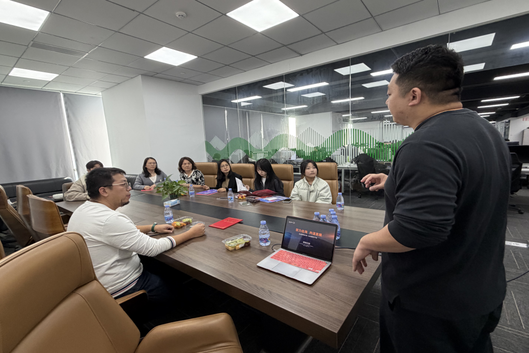 会上,青虎AI总经理唐得登详细介绍了公司发展概况及核心业务布局。杨海娜简要阐述了跨境数字营销系的专业建设情况、人才培养特色以及近年来校企合作的成果与经验。双方对前期联合开展的数字营销实训项目进行了总结。学生通过接触前沿AI营销技术,实操能力得到了有效提升。同时,针对实训过程中暴露出的准备仓促、时长偏短等问题,双方一致同意进一步完善方案,优化时间流程、降低上手难度,提升实训体验与实效。