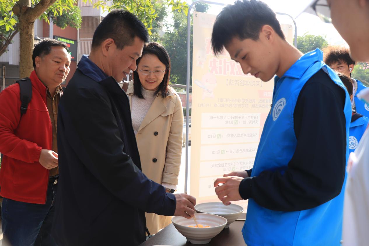 唐毓秋副校长一行走访VR体验区、趣味互动区、知识问答区等服务点位,与志愿者深入交流,细致询问残特奥会志愿服务岗位分工、服务流程等细节。随后,唐毓秋副校长强调,残特奥会志愿服务是彰显城市文明、检验学校育人成效的重要窗口,更是深化“三全育人”改革的关键载体,需引导青年学子在服务社会中坚定信念、锤炼本领、厚植担当;希望志愿者秉持“奉献、友爱、互助、进步”精神,以专业素养、饱满热情、严谨作风用心履职,让残特奥精神薪火相传,让青春风采在奉献中绽放。校领导的嘱托与关怀令志愿者备受鼓舞,大家纷纷表示将以更高标准、更严要求圆满完成后续志愿服务,不负学校信任与期望。