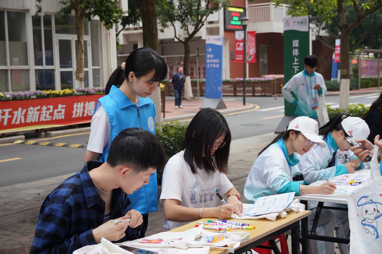 志愿者们准备了洁白的环保袋与五彩斑斓的颜料,邀请市民共同参与创作。大家以笔为媒,将十五运会与残特奥会吉祥物“喜洋洋”“乐融融”的形象绘制在环保袋上。通过手绘的方式,将体育文化与环保实践相结合,不仅让吉祥物形象更加贴近生活,也将“少用塑料袋、践行低碳生活”的环保理念深入人心。