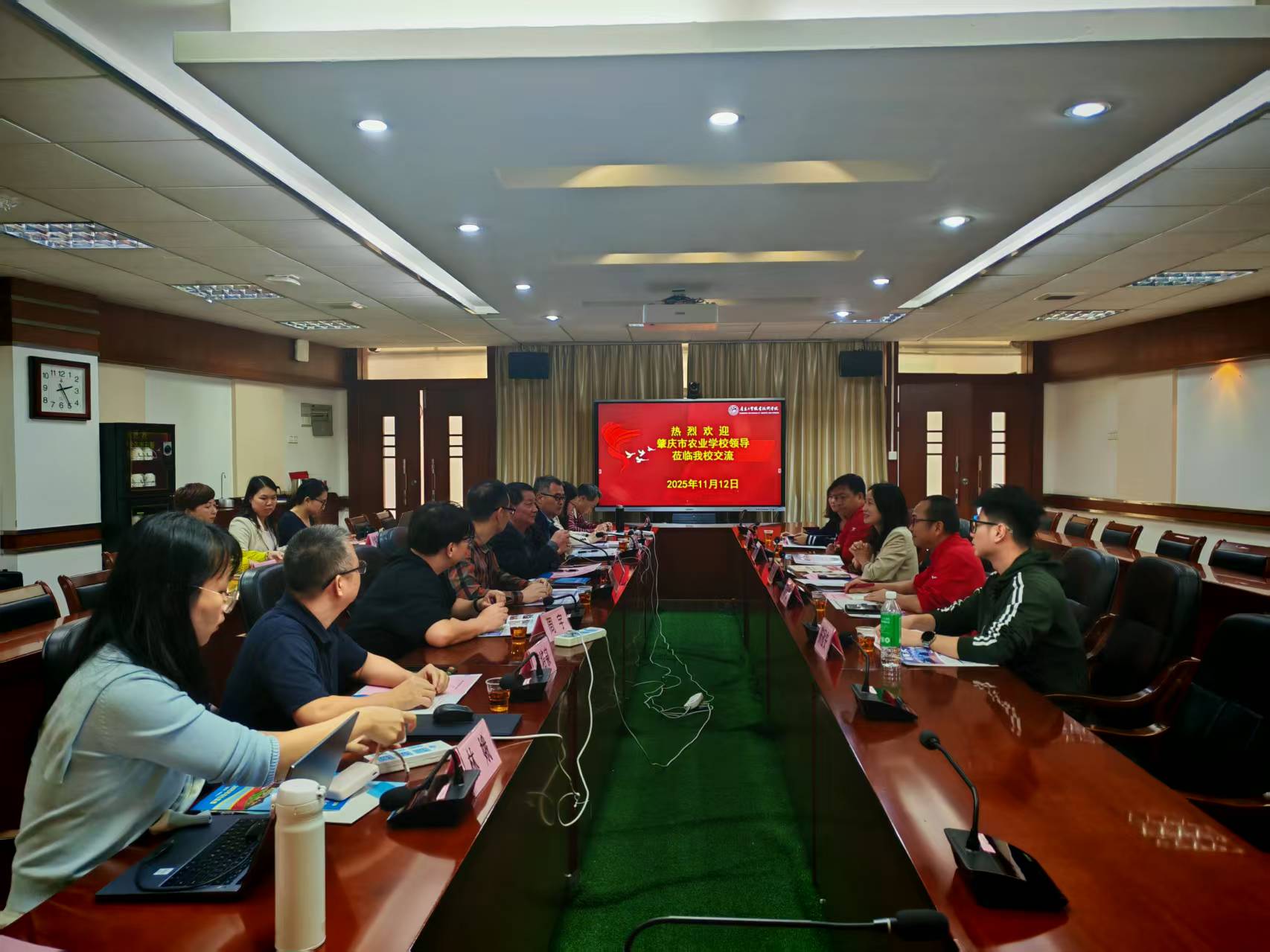 11月12日,肇庆市农业学校(以下简称“肇庆农校”)党委委员、副校长文丽等一行5人来我校针对中高职贯通三二分段试点工作等内容进行交流研讨。我校教务部部长何军拥、学生工作部副部长郭朝明、各相关学院副院长以及专业负责人和老师等12人参与交流座谈,会议由何军拥主持。
