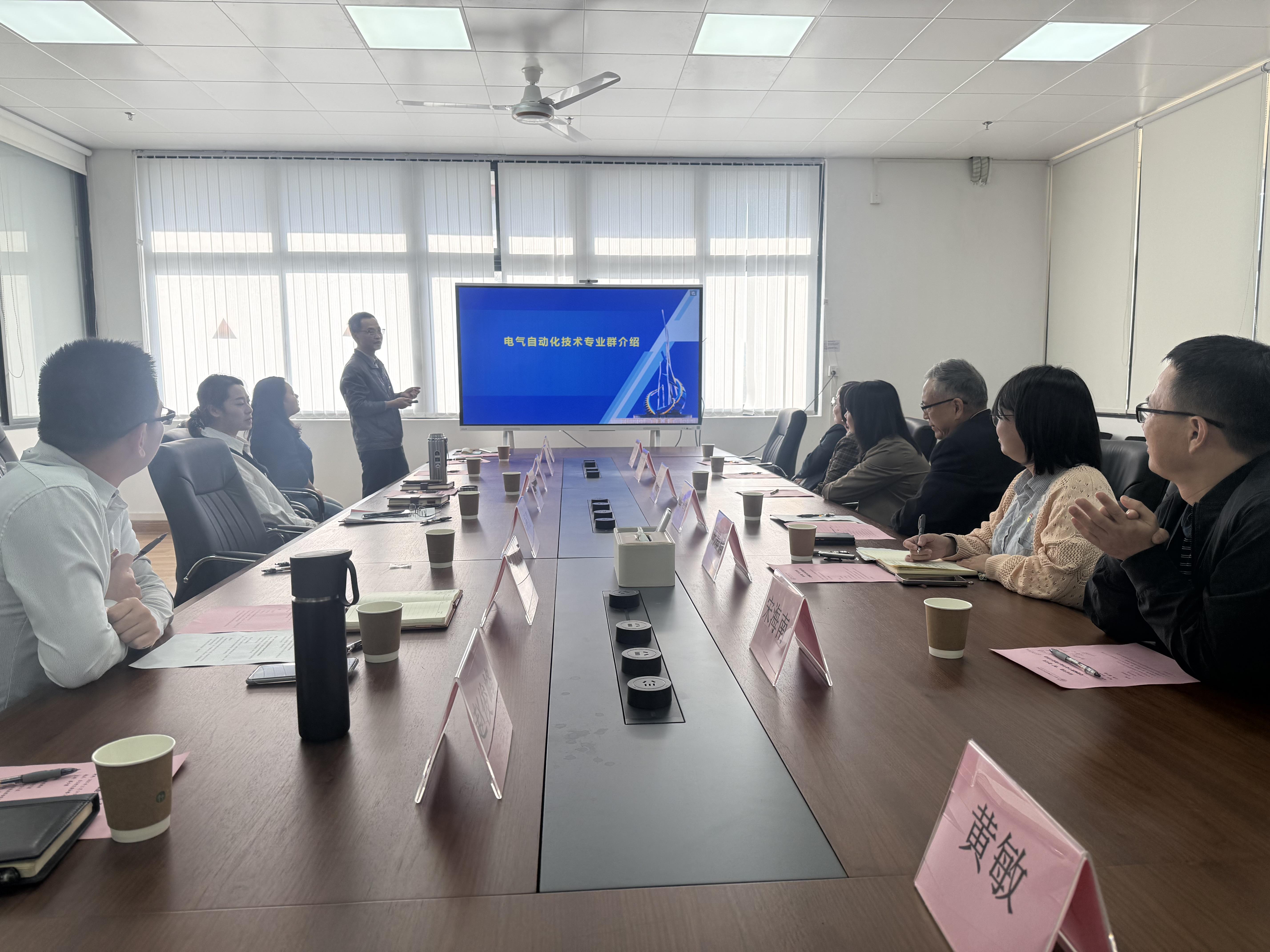 随后,双方进行座谈交流,会议由机电工程学院党总支副书记蔡少德主持。杨慧代表我校致欢迎词,介绍机电工程学院发展历程、取得成果和结对共建工作安排。梁超鹏开展结对共建“智”造未来——党建赋能专业升级专题党课,领学党的二十届四中全会精神,并结合国家级样板党支部机电工程学院教师第一党支部为例,讲述党建如何赋能专业升级。刘益标介绍国家第二期“双高计划”电气自动化技术专业群建设思路和专业群建设情况与“十大”改革任务举措。庄继东介绍广现职院智能制造学院基本情况、主题党日活动以及存在实训设备缺乏、教师职称晋升和产教融合等方面的困境。双方就建设院系级结对共建示范点和建设支部结对共建示范点进行热烈交流。