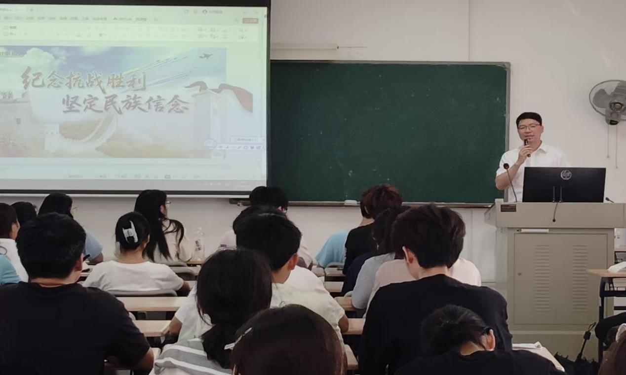 2025年9月29日上午,学校党委委员、副校长徐勇军以《纪念抗战胜利 坚定民族信念》为题,在白云校区明德楼2区403室为25地信4、5班的学生讲授了一堂题为“纪念抗战胜利,坚定民族信念”的专题思政课。