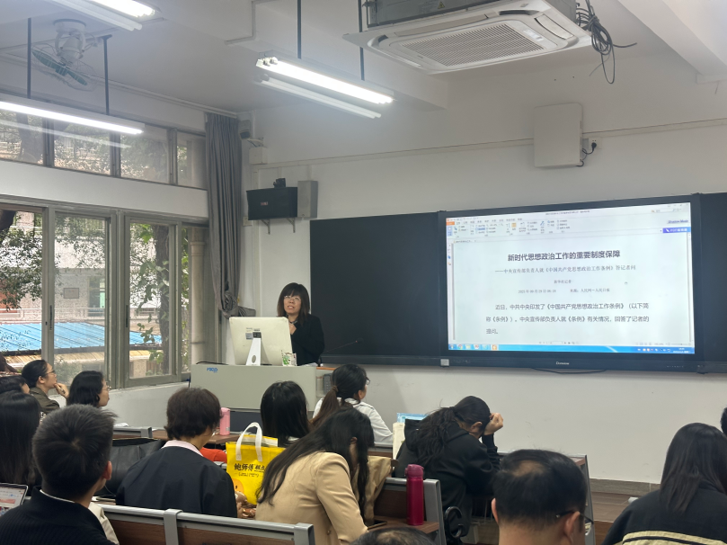 随后,刘凤梅院长带领全体教师学习了《中国共产党思想政治工作条例》《教育部办公厅等七部门关于开展全国高校“立报国强国大志向 做挺膺担当奋斗者”宣传教育的通知》以及《关于在新时代新征程高校思政课建设中进一步发挥共青团作用的实施意见》等文件,强调要深刻领会文件精神,不断提高政治判断力、政治领悟力、政治执行力,为探索构建党团联动、协同育人的思政工作新格局提供了明确指引。