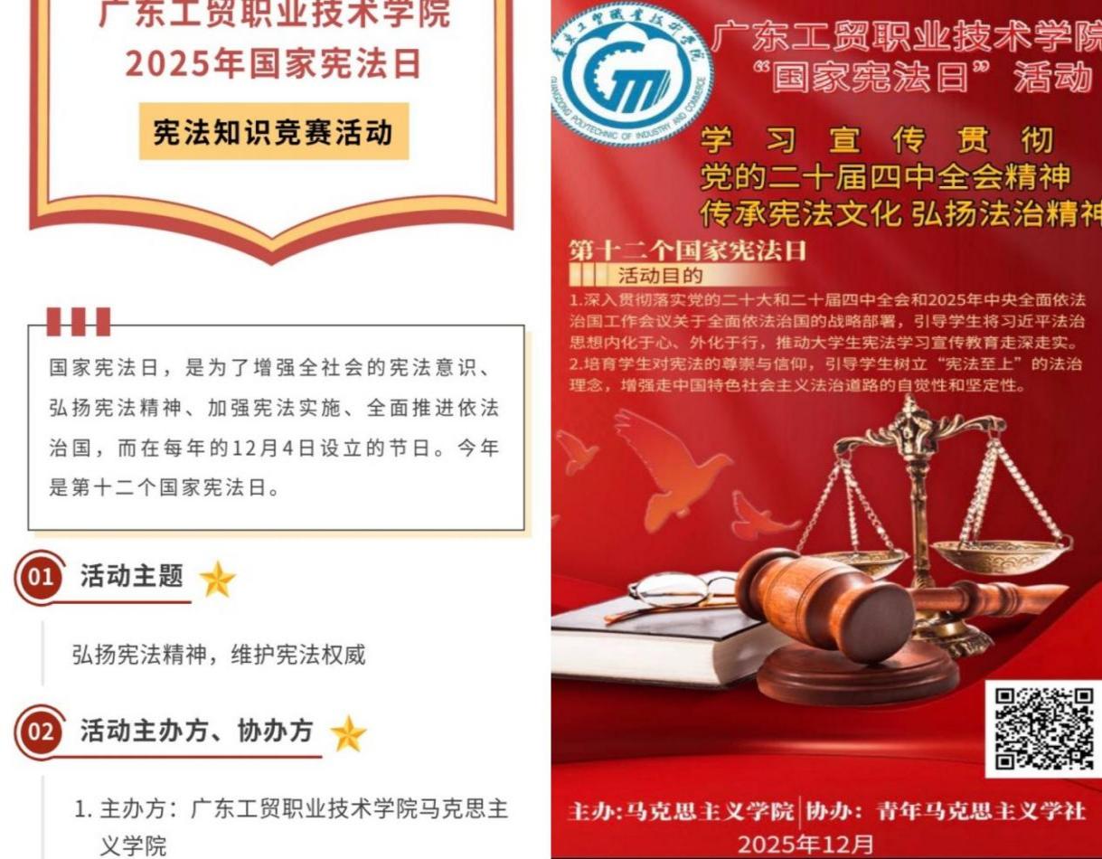 宪法是国家的根本大法,是治国安邦的总章程。在第十二个国家宪法日、第八个宪法宣传周到来之际,为全面贯彻落实党的二十大和二十届历次全会精神,深入学习宣传贯彻习近平法治思想,推动宪法深入人心,马克思主义学院于12月1日-5日在全体新生中举行了为期一周的“宪法宣传周”活动。